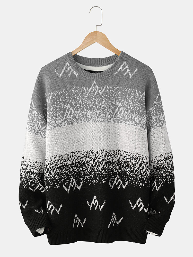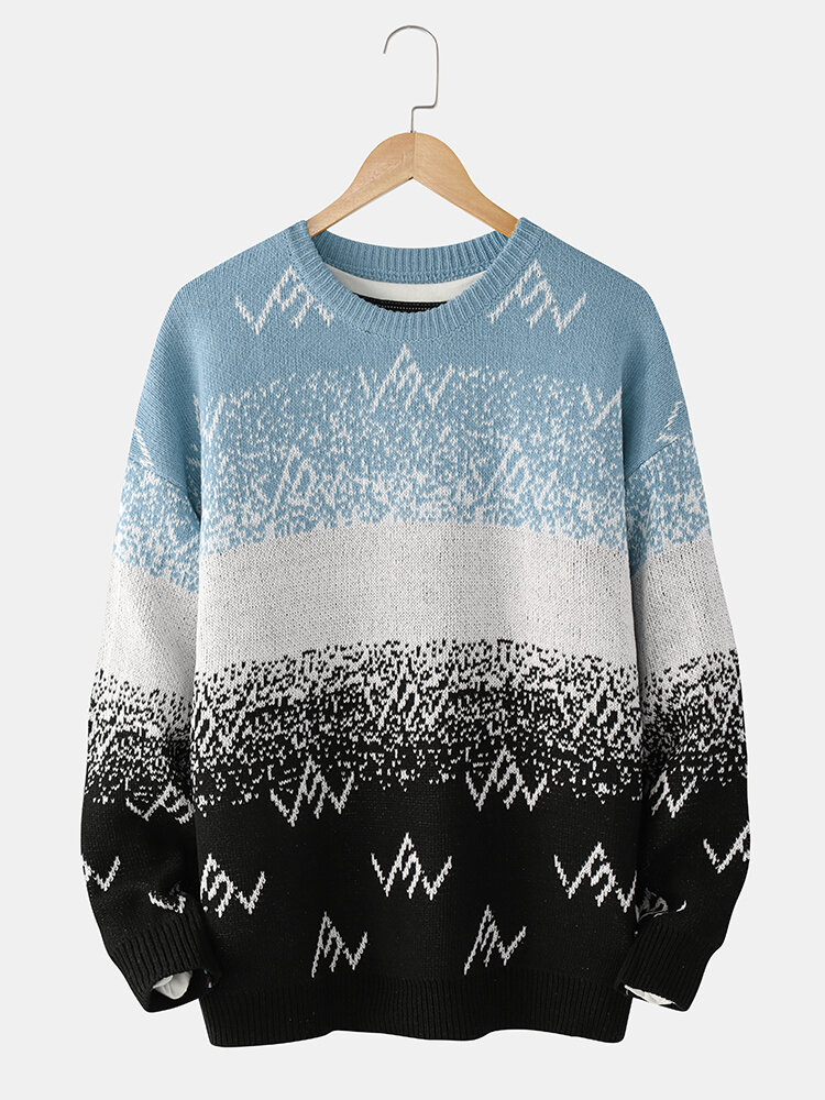 Mens Colorblock Knitted Round Neck Drop Shoulder Warm Sweaters – Blue L