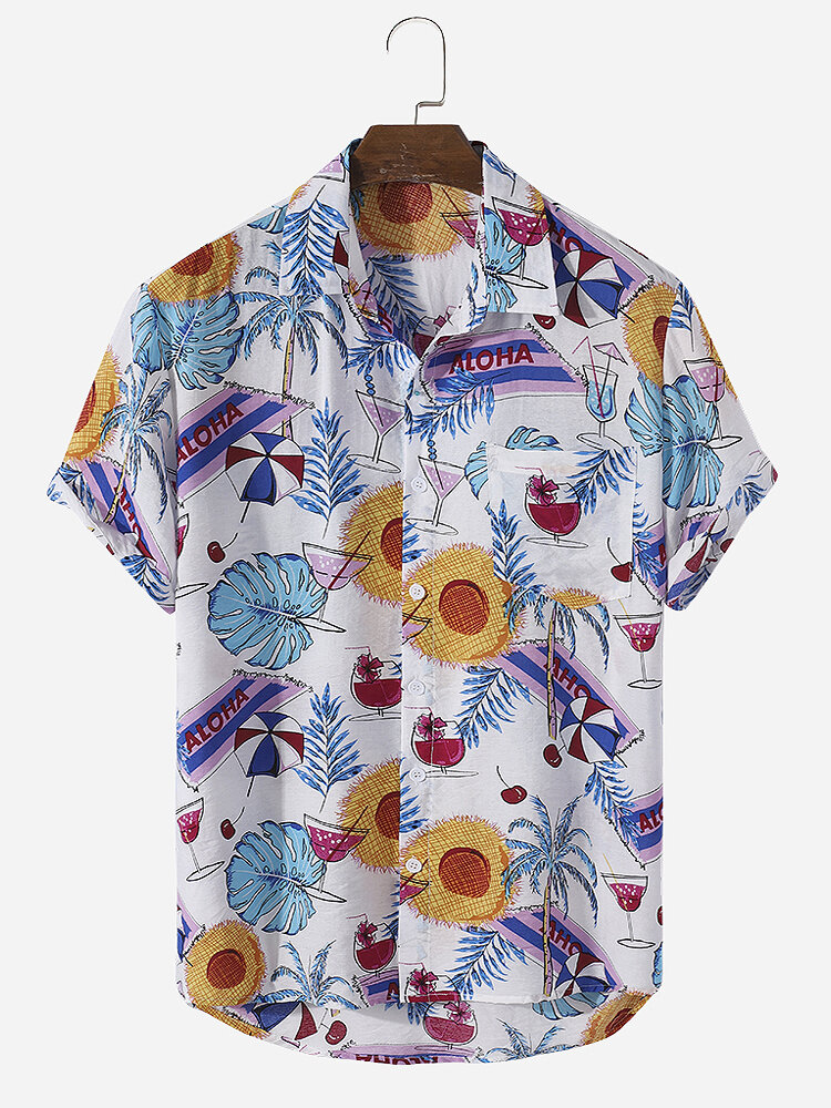 Brand:ChArmkpRDecoration:Pocket,PatternFit Type:Regular FitMaterial:CottonNeckline:LapelPattern Type:CartoonScene:Leisure,Home,Beach,CasualSeason:SummerSize:XXL,L,S,XL,MSleeve:Short SleeveStyle:Casual,Hawaii StyleThickness:Regular