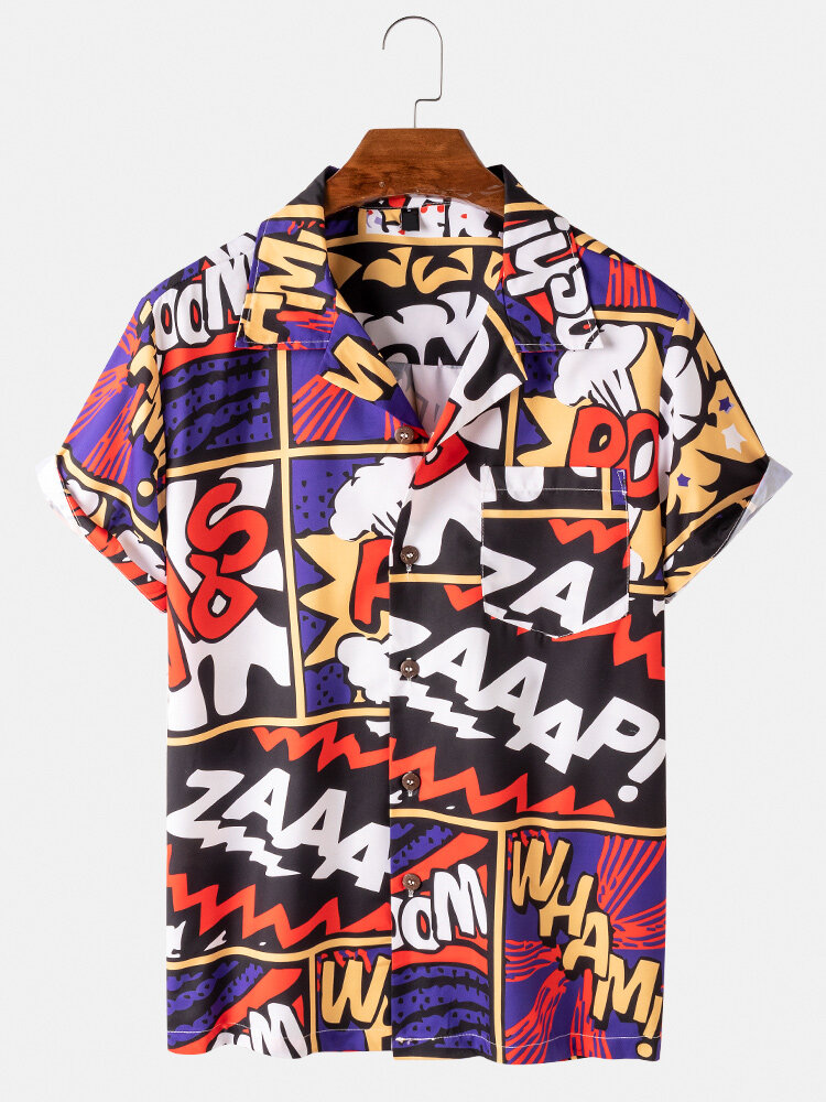 Description:Decoration:PocketFit Type:Regular FitMaterial:PolyesterNeckline:Revere CollarPattern Type:LetterScene:Leisure,Home,CasualSeason:SummerSize:L,S,XL,MSleeve:Short SleeveStyle:Casual