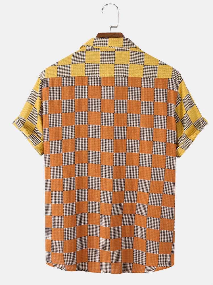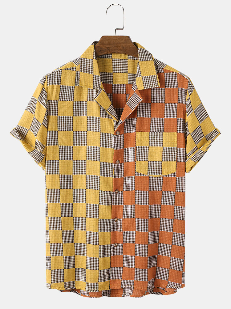 Brand:ChArmkpRDecoration:Pocket,PlaidFit Type:Regular FitMaterial:CottonNeckline:LapelPattern Type:PlaidScene:Leisure,Home,CasualSeason:SummerSize:XXL,L,S,XL,MSleeve:Short SleeveStyle:CasualThickness:Regular