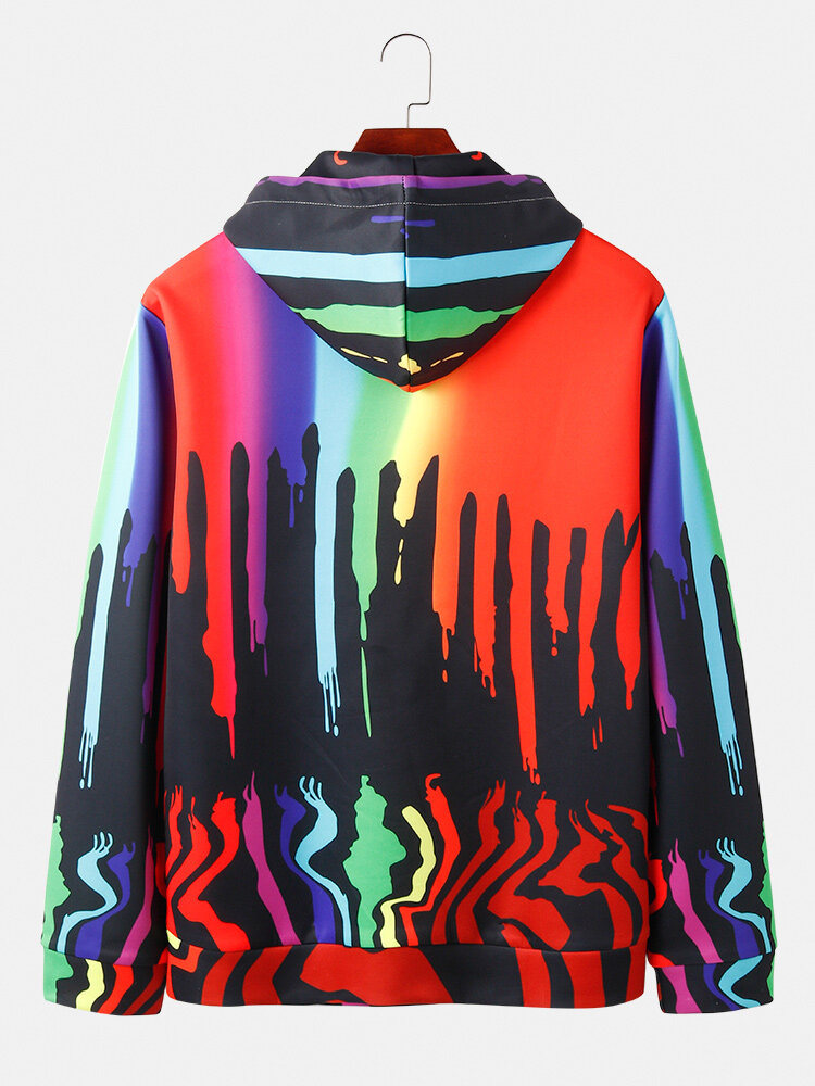 Mens Colorful Print Drop Shoulder Drawstring Hoodies With Kangaroo Pocket – Black M