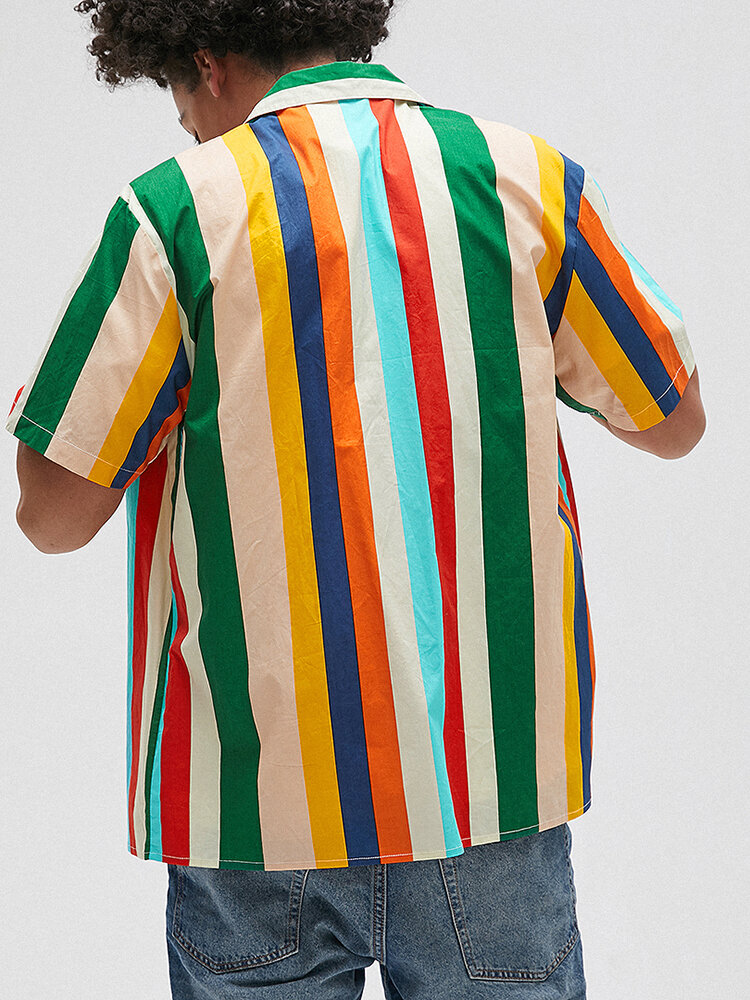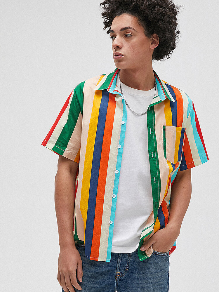 Description:Item Type: ShirtsPattern Type: StripeGender: MenFit Type: FitStyle: Casual,FashionThickness: RegularCollar: Turn Down CollarSeason: SummerDecorations: PocketMaterial: 100% CottonSleeve Length: Short SleeveColor: Yellow,PinkCuff Type: Shirt SleeveOccasion: Leisure,Home,Daylife