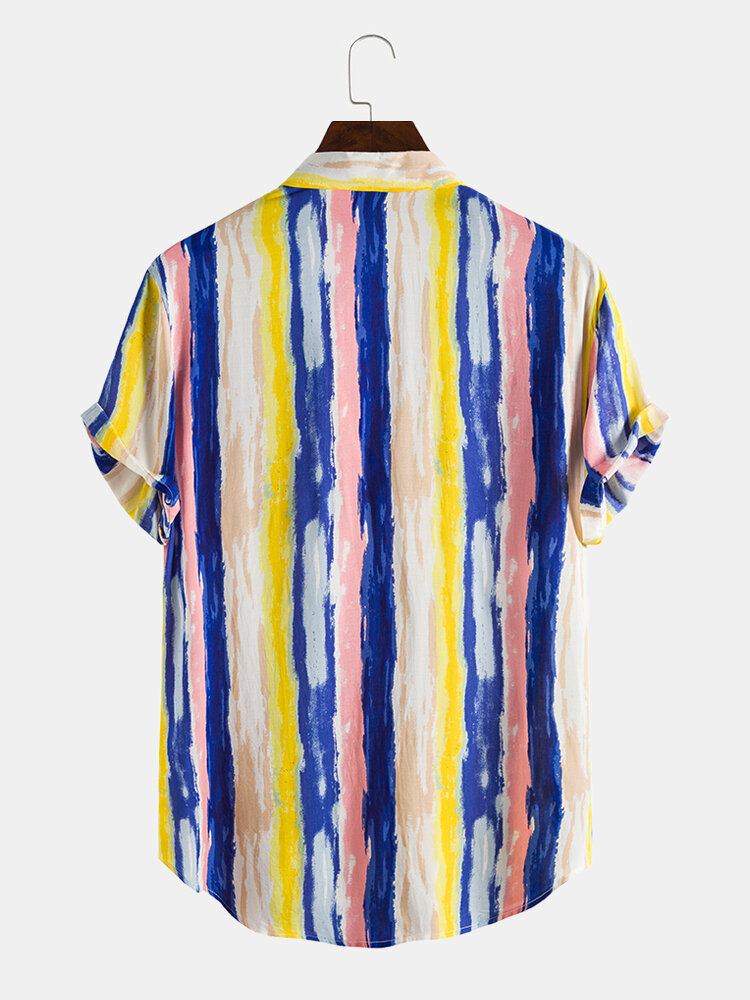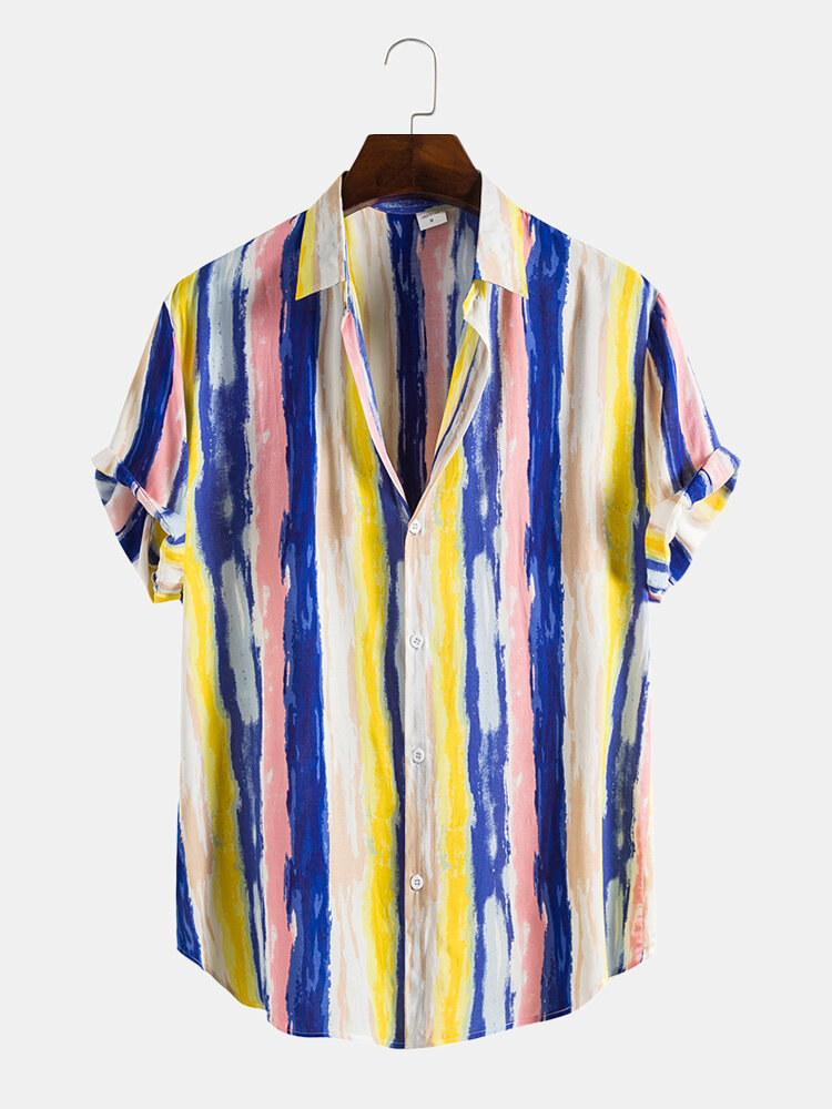 Description:Decoration:SimpleFit Type:Regular FitMaterial:PolyesterNeckline:LapelPattern Type:StripedScene:Leisure,CasualSeason:Spring,Summer,AutumnSize:XXL,L,S,XL,MSleeve:Short SleeveStyle:CasualThickness:Thin