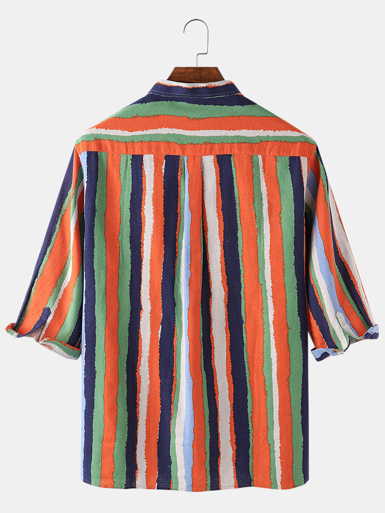 Fit Type:Regular FitMaterial:CottonNeckline:Stand CollarPattern Type:StripedScene:Leisure,Home,Beach,CasualSeason:Spring,SummerSize:XXL,L,XL,S,MSleeve:Half SleeveStyle:Casual,Hawaii Style