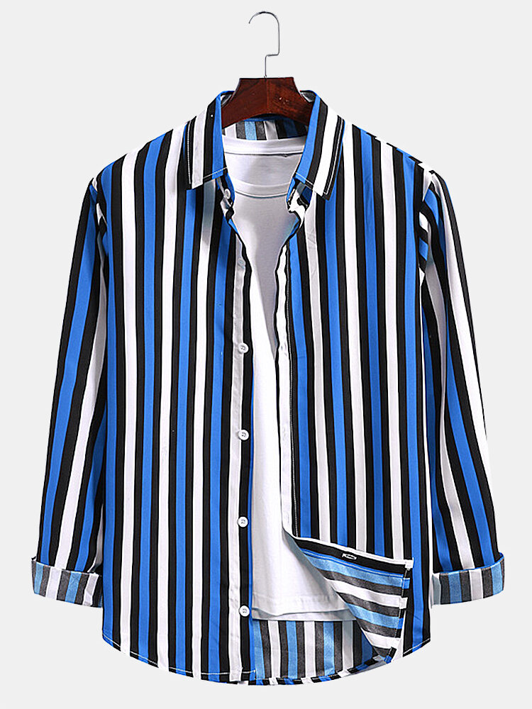 Fit Type:Regular FitMaterial:PolyesterNeckline:LapelPattern Type:StripedScene:Leisure,Home,Business,CasualSeason:Spring,AutumnSize:L,S,XL,MSleeve:Long SleeveStyle:Vintage,Sport,CasualThickness:Regular