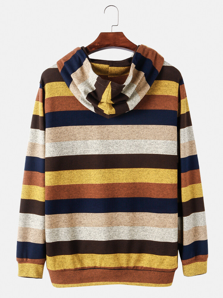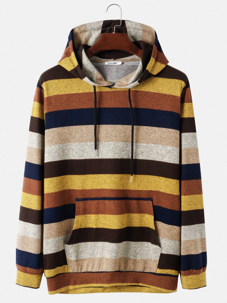 Mens Colorful Striped Fit Drawstring Hoodies With Muff Pocket – Yellow S
