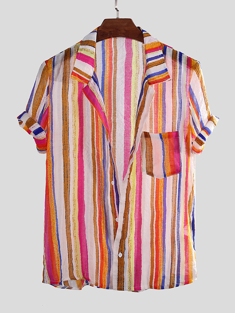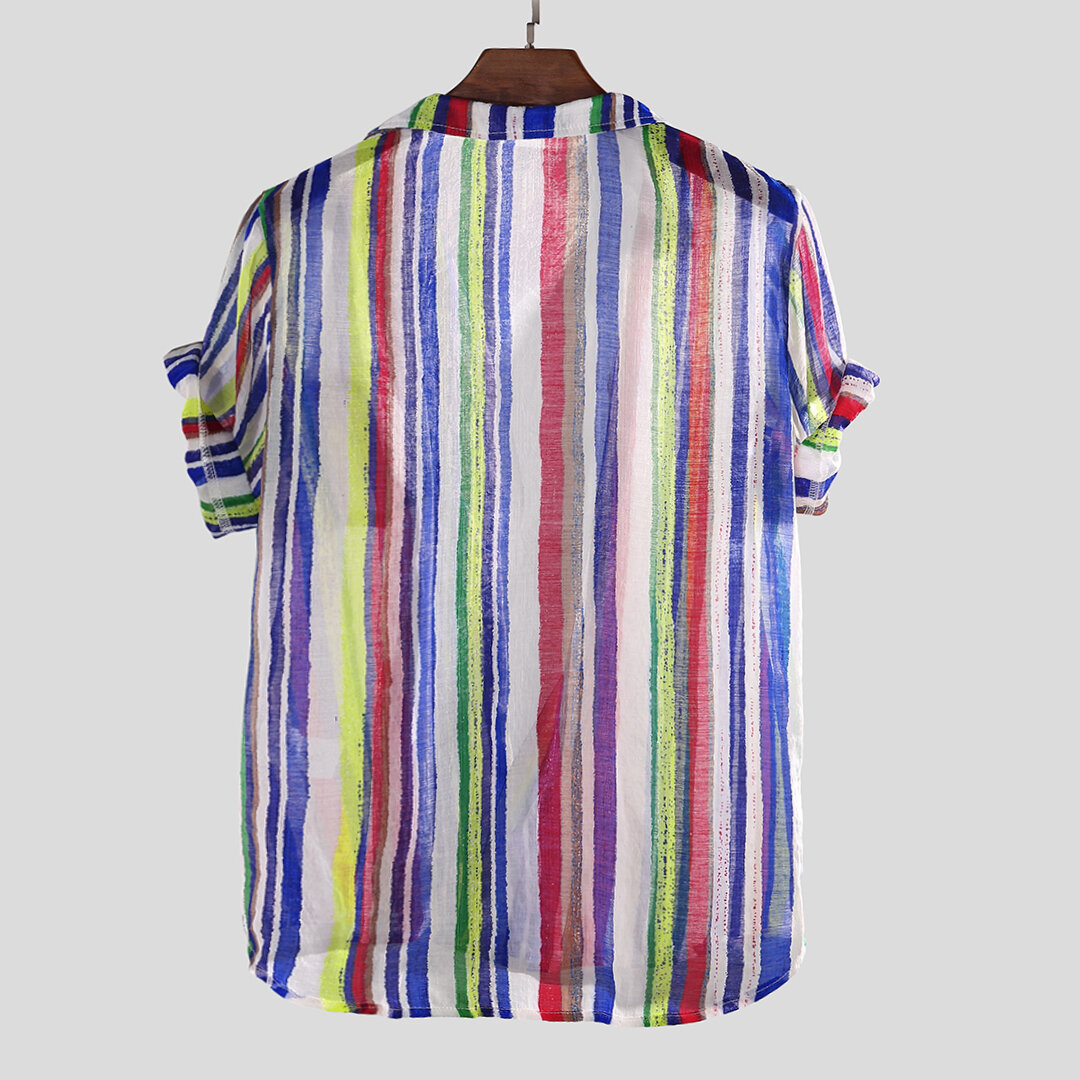 Mens Colorful Striped Printed Summer Loose Lightweight Shirt – 2XL Blue