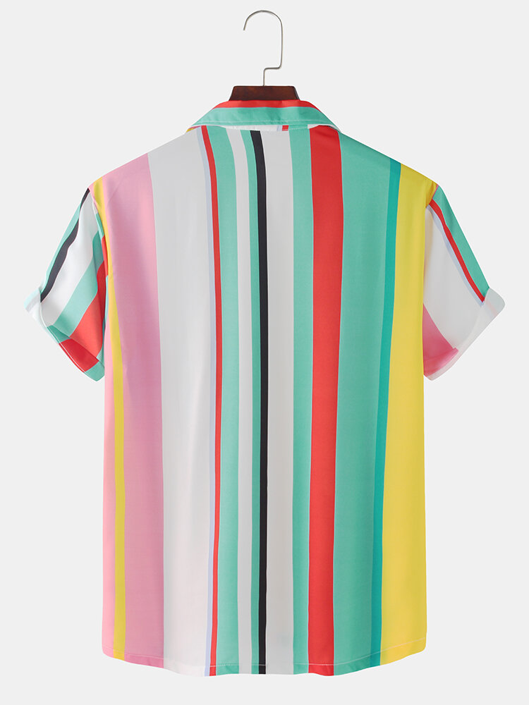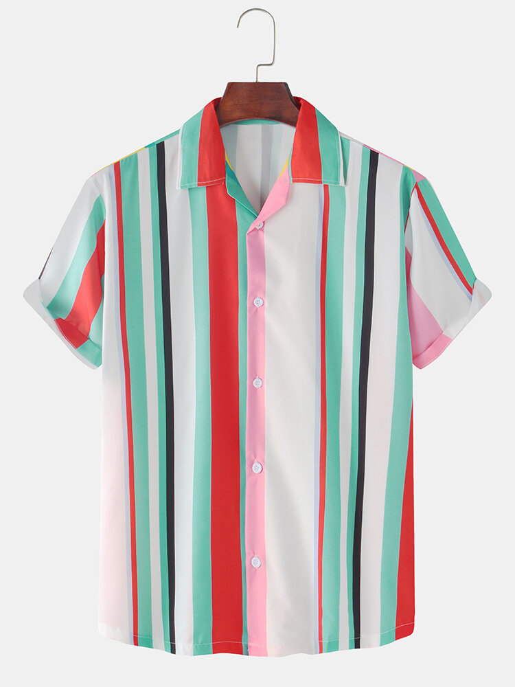 Description:Fit Type:Regular FitMaterial:PolyesterNeckline:LapelPattern Type:StripedScene:Leisure,Home,Beach,CasualSeason:SummerSize:XXL,L,XL,MSleeve:Short SleeveStyle:Casual,Hawaii Style