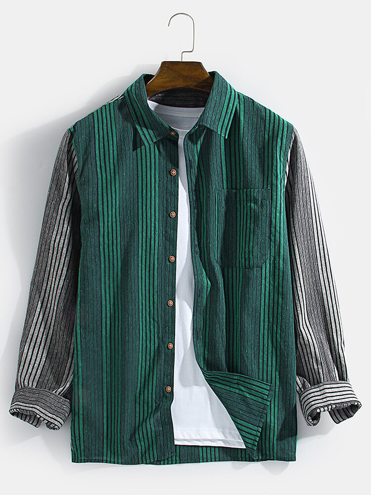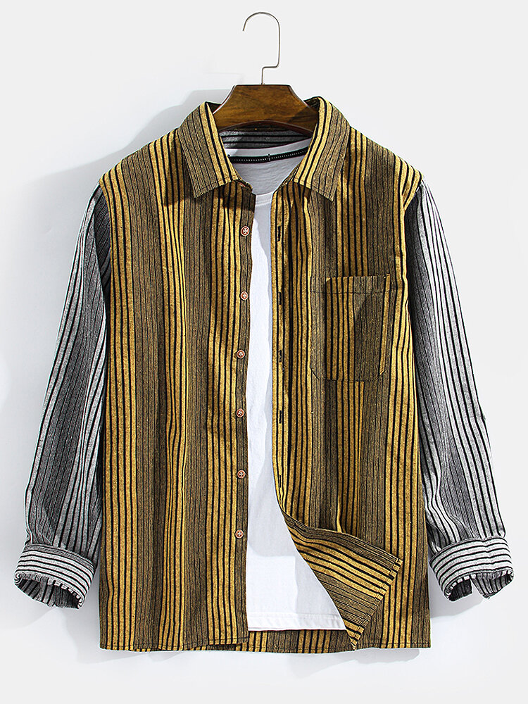 Brand:ChArmkpRDecoration:Pocket,ButtonFit Type:Regular FitMaterial:CottonNeckline:LapelPattern Type:Striped,PatchworkScene:Leisure,CasualSeason:Spring,AutumnSize:M,XXL,L,S,XLSleeve:Long SleeveStyle:CasualThickness:Regular