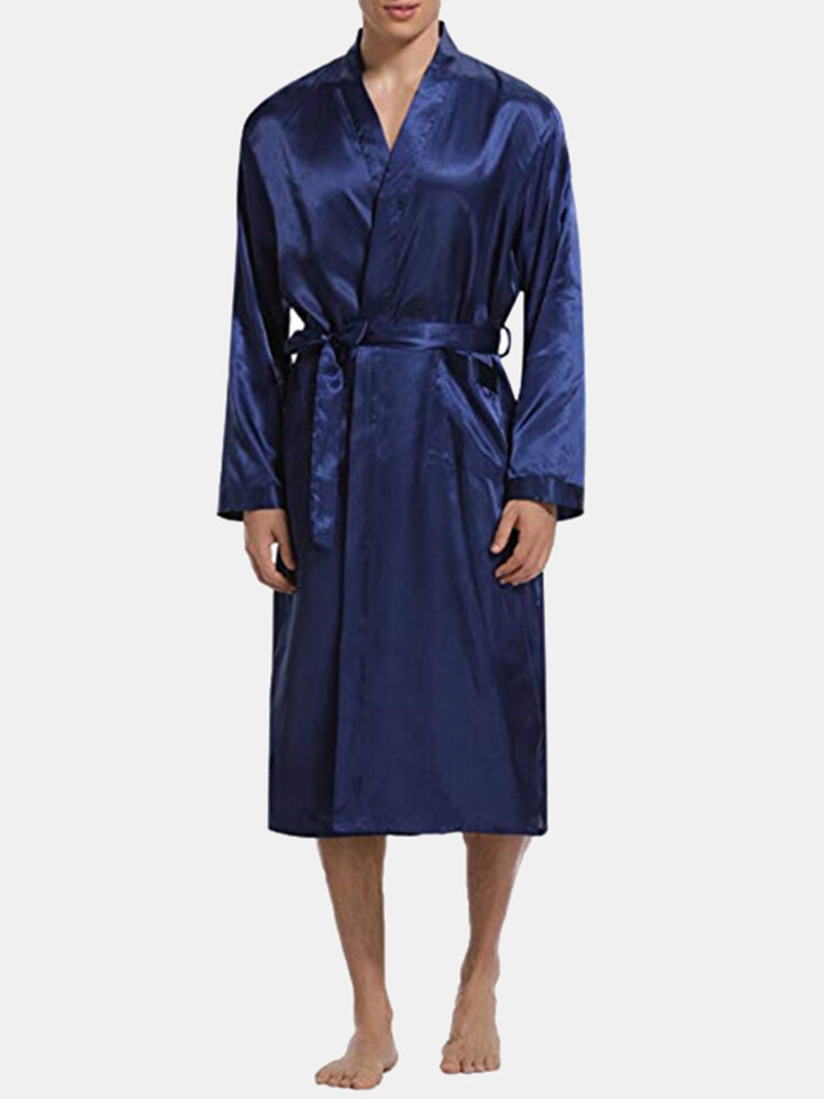 Brand Name: INCERUNClothing Length: Mid-longItem Type: Sleepwear RobeThickness: RegularGender: MenFit Type: LooseStyle: Casual, HomeDecoration: PocketsMaterial: 100% PolyesterPattern Type: Solid ColorCollar: V-neckSeason: Spring, AutumnHooded: NoWeight: 0.23kgClosure Type: DrawstringColor: Navy, BlackSleeve Length: Long SleeveOccasion: Leisure, HomeCuff Type: Straight Sleeves