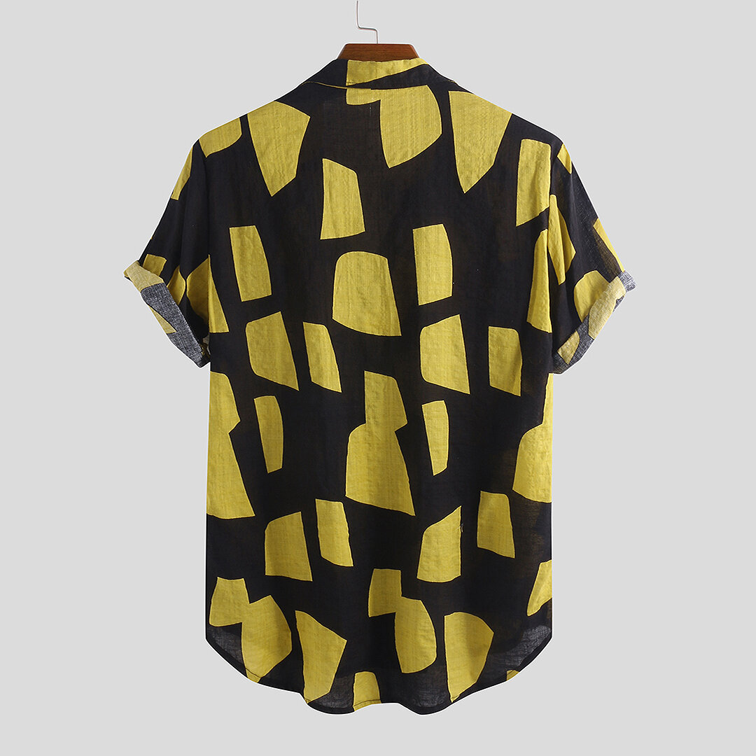 Brand Name: ChArmkpRSleeve Length: Short SleeveItem Type: ShirtsPattern Type: Color BlocksGender: MenFit Type: LooseStyle: Leisure, FashionThickness: RegularCollar: Turn-down CollarSeason: SummerMaterial: 100% RayonColor: Contrast ColorCuff Type: Straight SleevesOccasion: Casual, Vacation