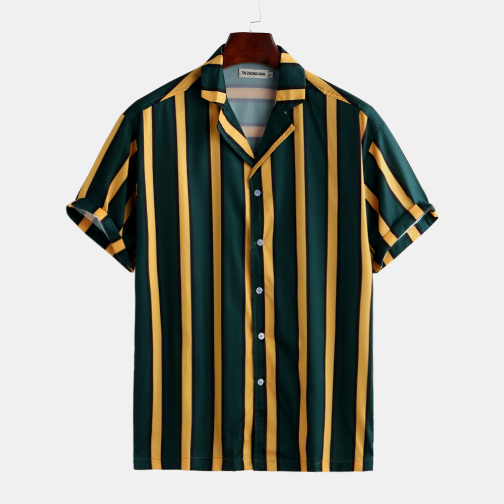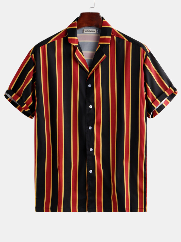 Mens Contrast Color Stripe Printed Summer Holiday Shirts – L Red