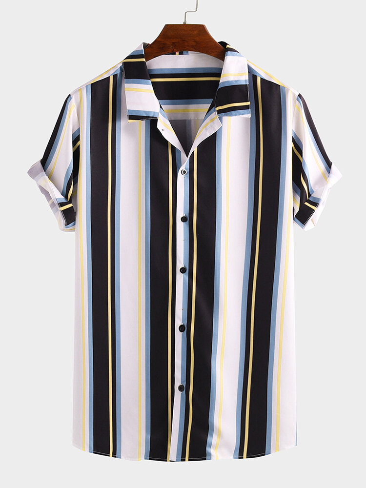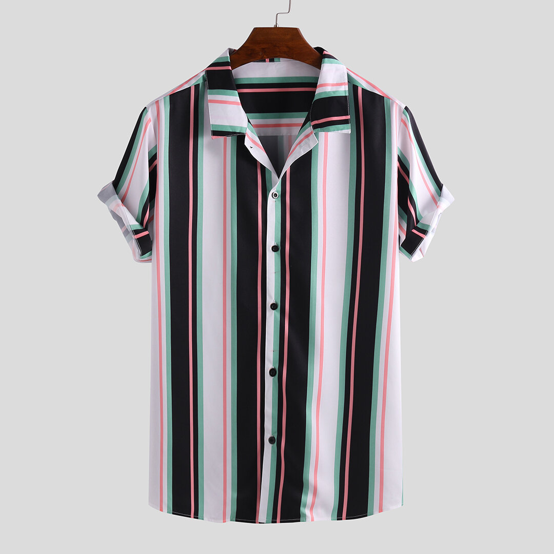 Brand Name: ChArmkpRSleeve Length: Short SleeveItem Type: ShirtsPattern Type: StripedGender: MenFit Type: LooseStyle: Urban, FashionThickness: RegularCollar: Turn-down CollarSeason: SummerMaterial: PolyesterColor: ColorfulCuff Type: Straight SleevesOccasion: Casual, Business