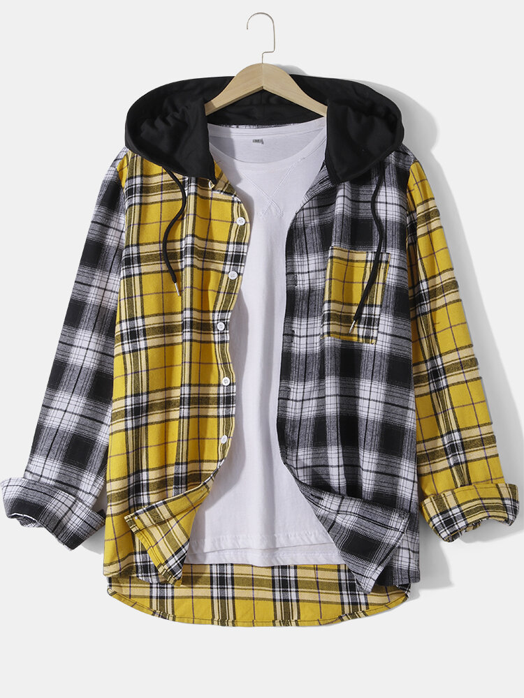 Description:Decoration:Hood,Pocket,ButtonMaterial:CottonNeckline:HoodedPattern Type:Plaid,PatchworkScene:Leisure,CasualSeason:Spring,AutumnSize:XXL,L,S,XL,MSleeve:Long SleeveStyle:CasualThickness:Regular