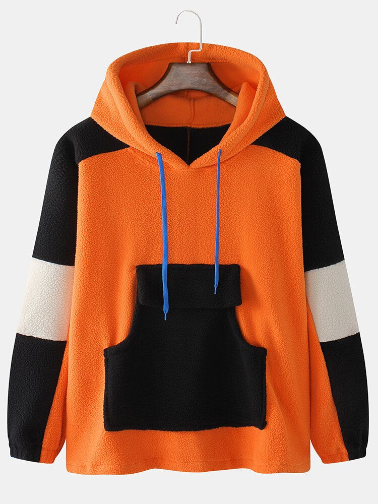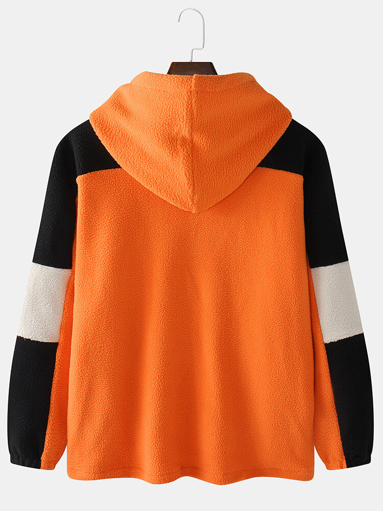 Mens Contrasting Colors Patchwork Lambswool Pocket Raglan Sleeves Hoodies – Black M