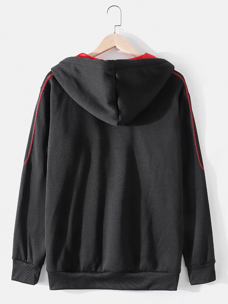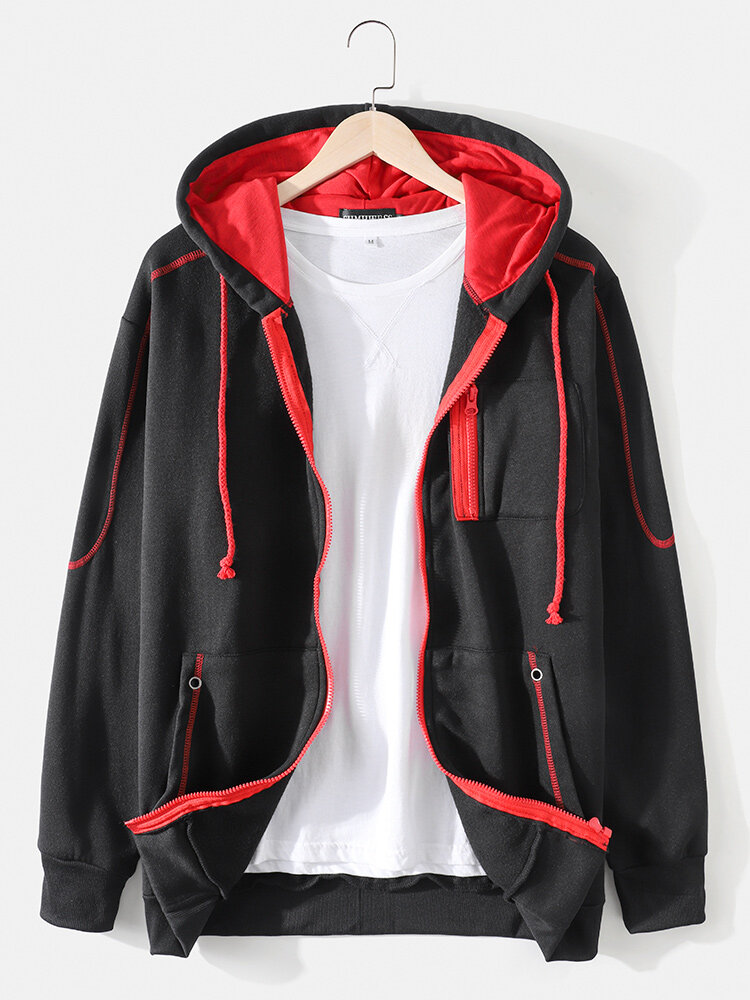 Mens Contrasting Colors Pocket Long Sleeve Design Zipper Hoodies – Black 2XL