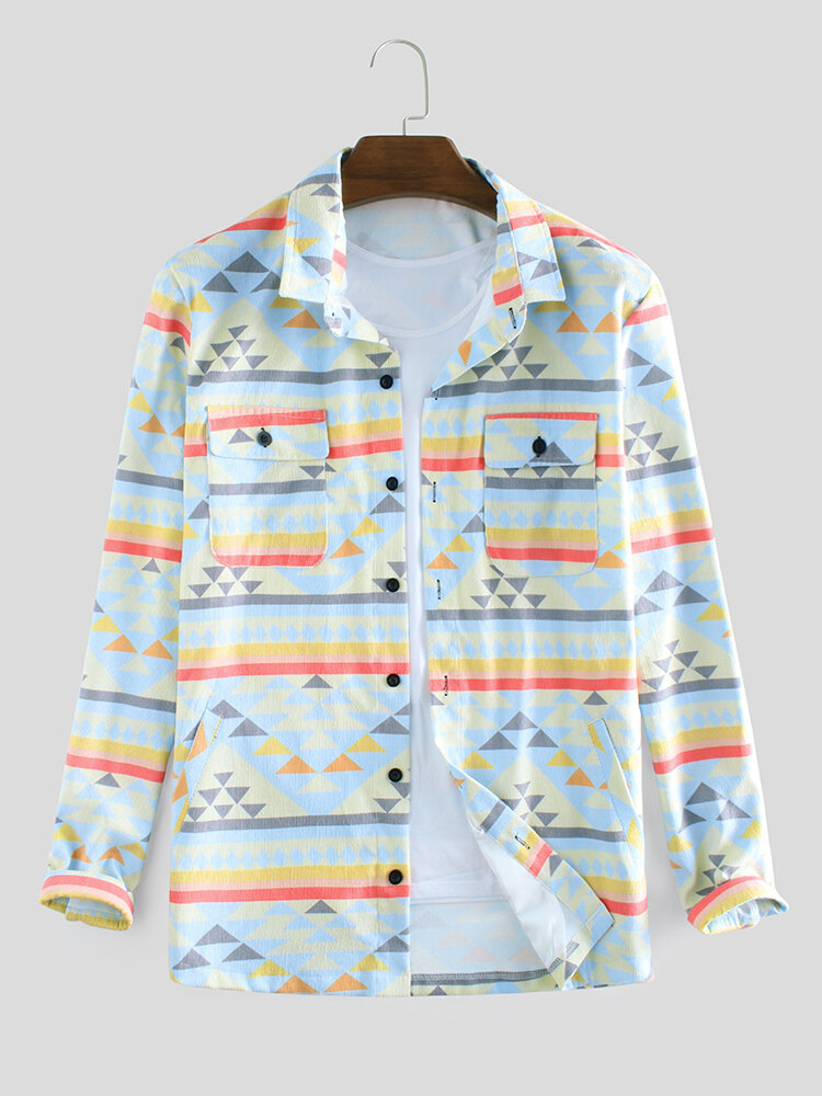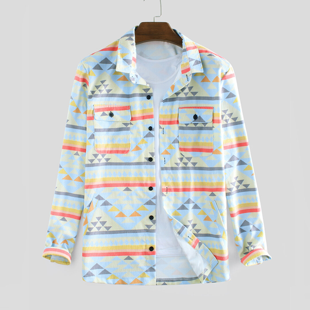 Mens Corduroy Abstract Printed Chest Insert Double Pocket – M Light Blue
