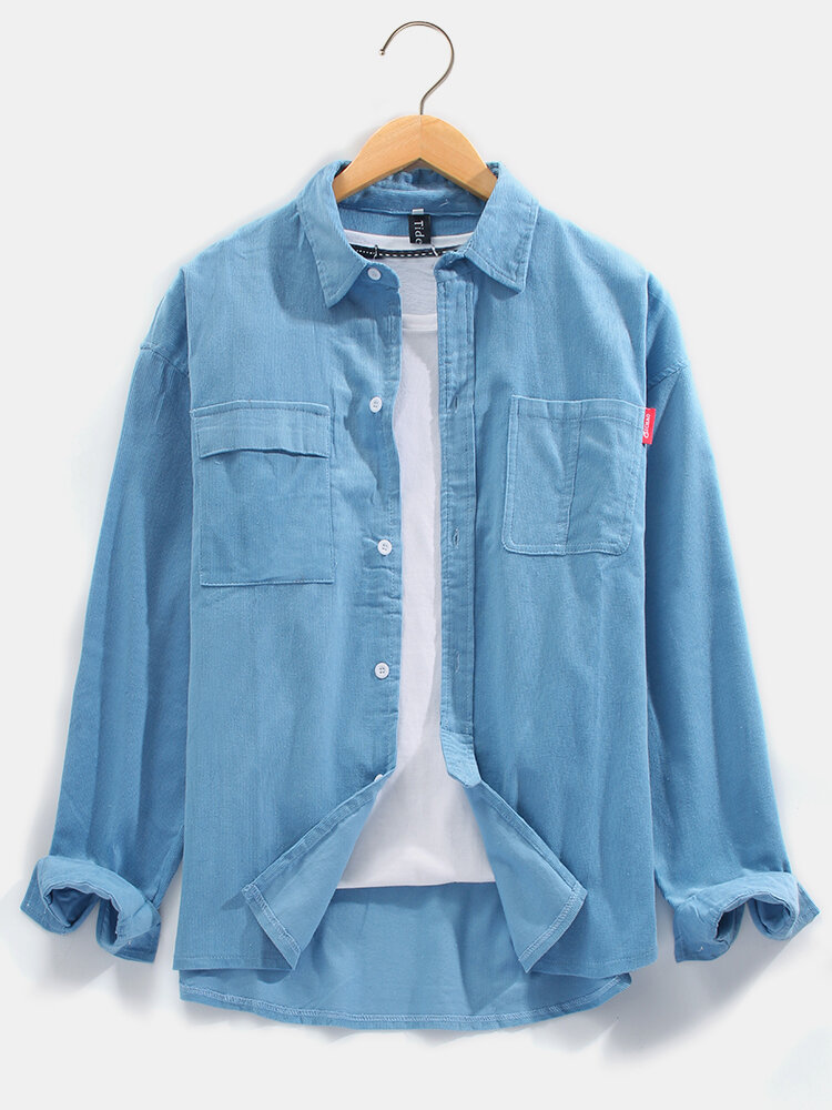 Description:Decoration:Pocket,ButtonFit Type:Loose FitMaterial:CottonNeckline:LapelPattern Type:SolidScene:Leisure,CasualSeason:Spring,AutumnSize:XXL,L,XL,MSleeve:Long SleeveStyle:CasualThickness:Regular
