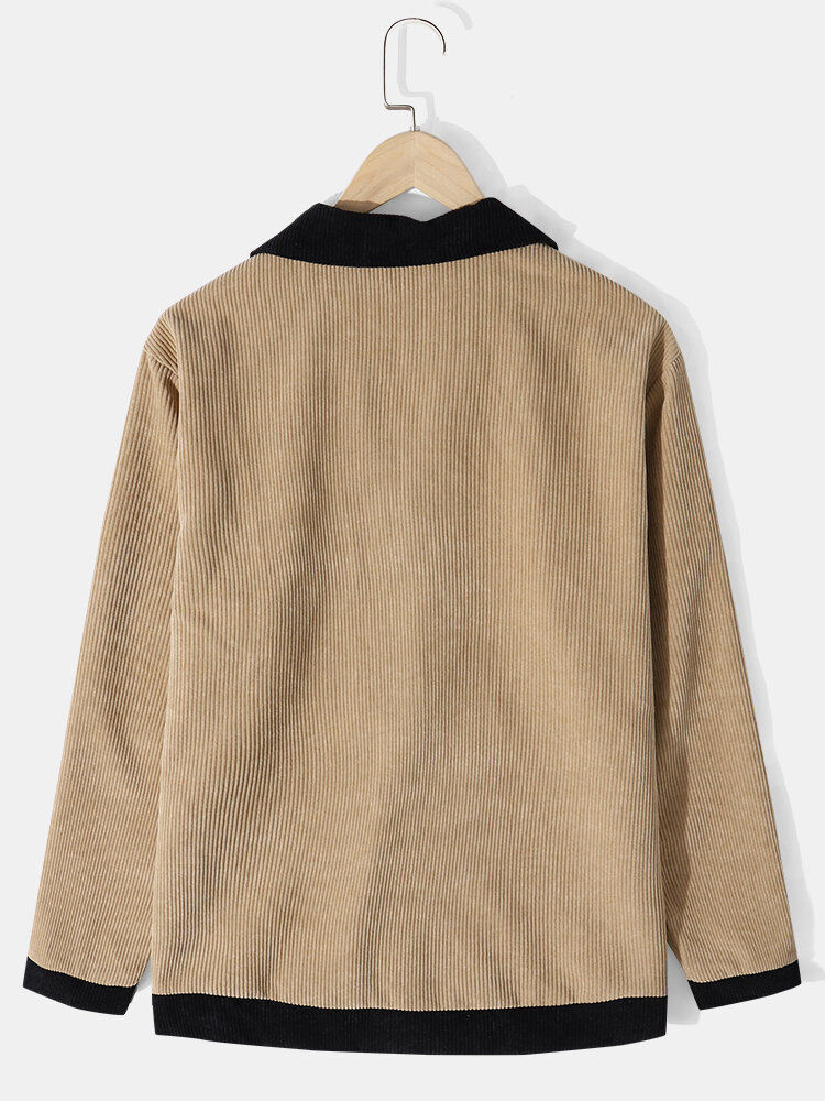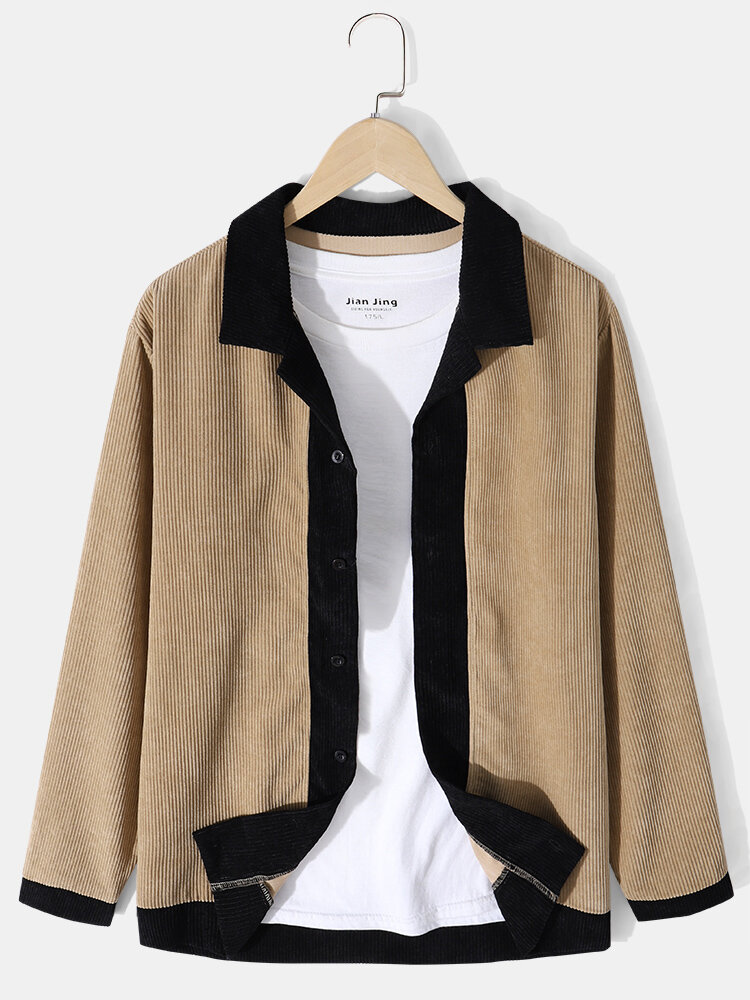 Mens Corduroy Contrast Camp Collar Casual Shirts – Yellow 2XL