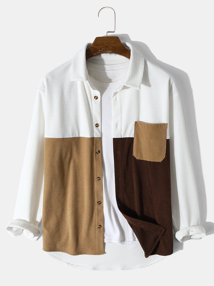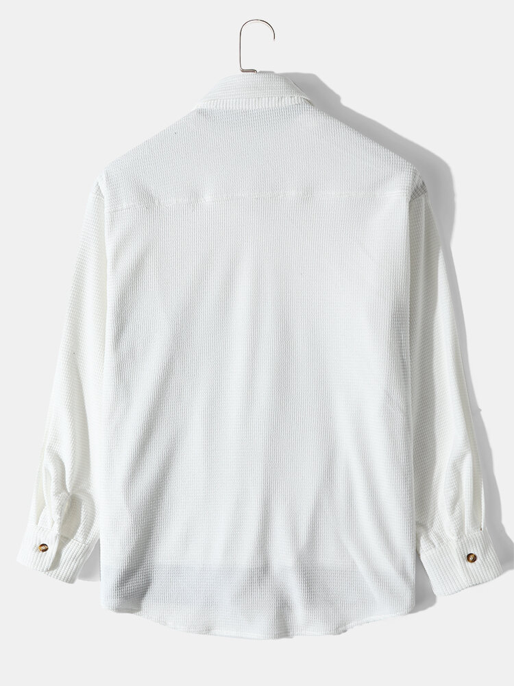 Mens Corduroy Patchwork Pocket Buttons Casual Shirts – White S