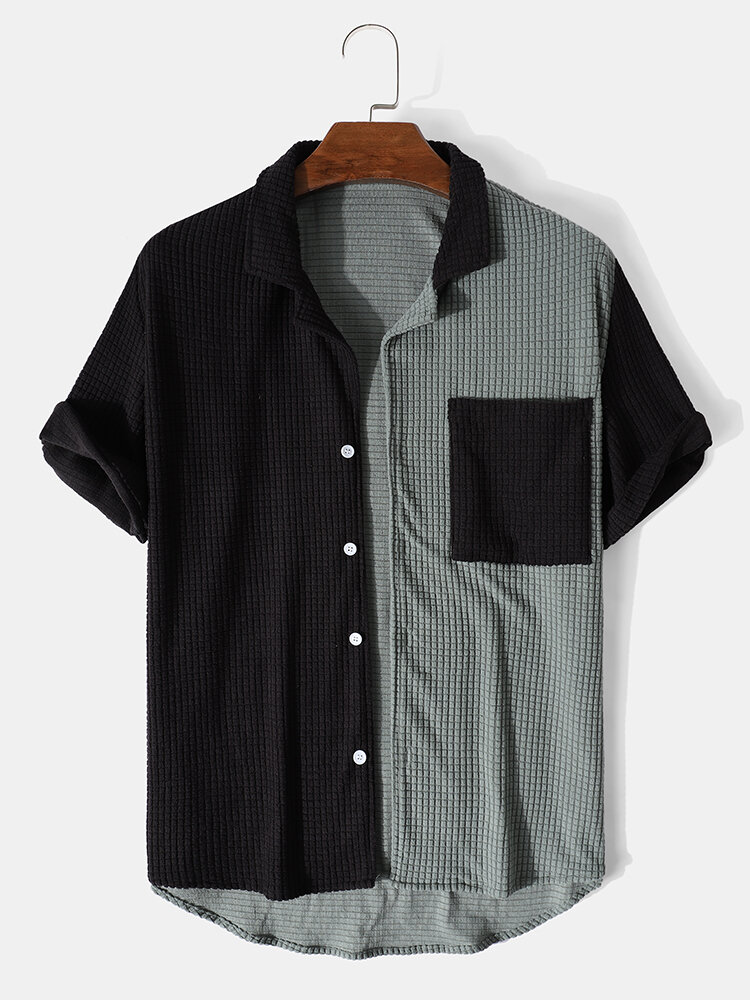 Brand:ChArmkpRDecoration:SplicingFit Type:Regular FitMaterial:CorduroyNeckline:LapelPattern Type:Patchwork,SolidScene:Leisure,CasualSeason:Spring,Summer,AutumnSize:XXL,L,S,XL,MSleeve:Short SleeveStyle:Vintage,CasualThickness:Thin