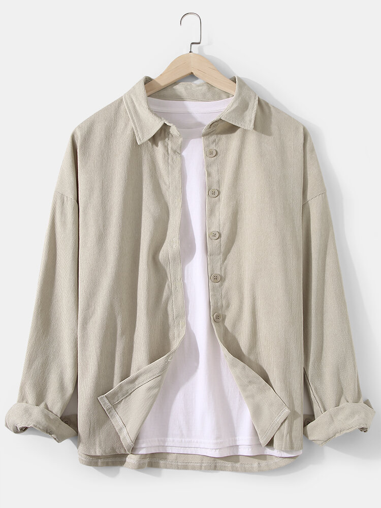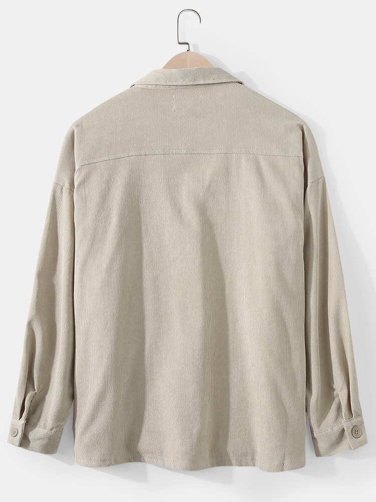 Description:Fit Type:Loose FitMaterial:Polyester,CorduroyNeckline:LapelPattern Type:SolidScene:Leisure,CasualSeason:Spring,AutumnSize:XXL,L,XL,MSleeve:Long SleeveStyle:CasualThickness:Regular