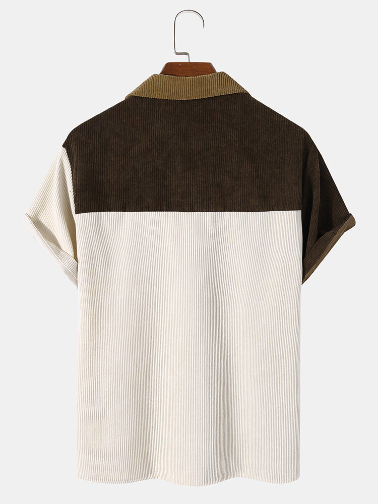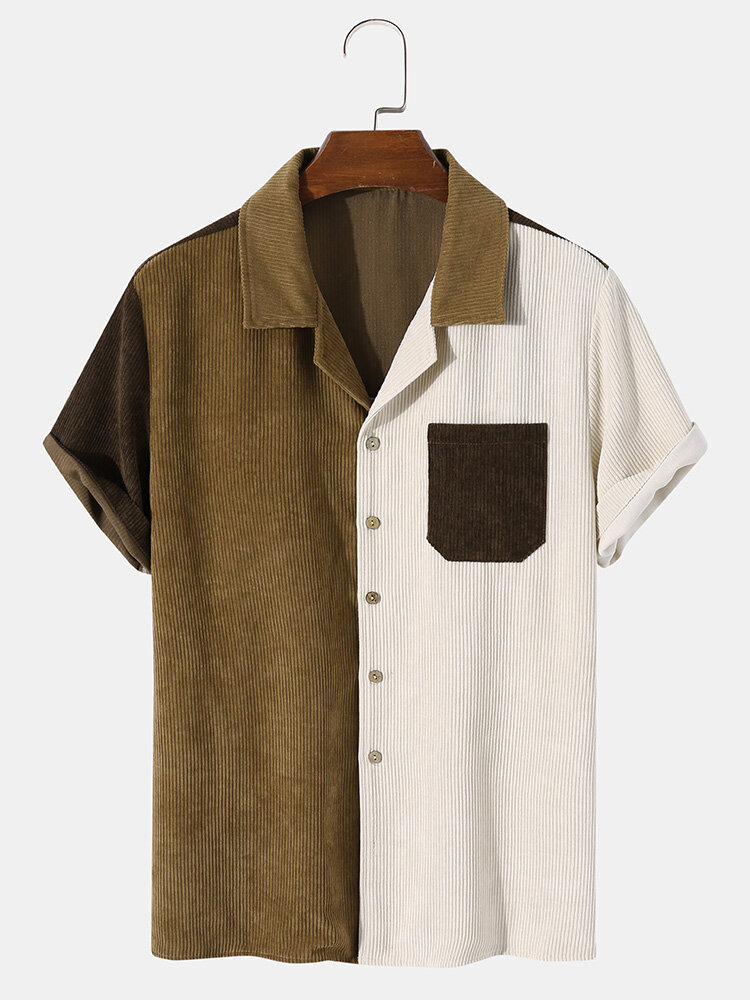 Mens Corduroy Pocket Revere Collar Casual Shirts – Apricot 2XL