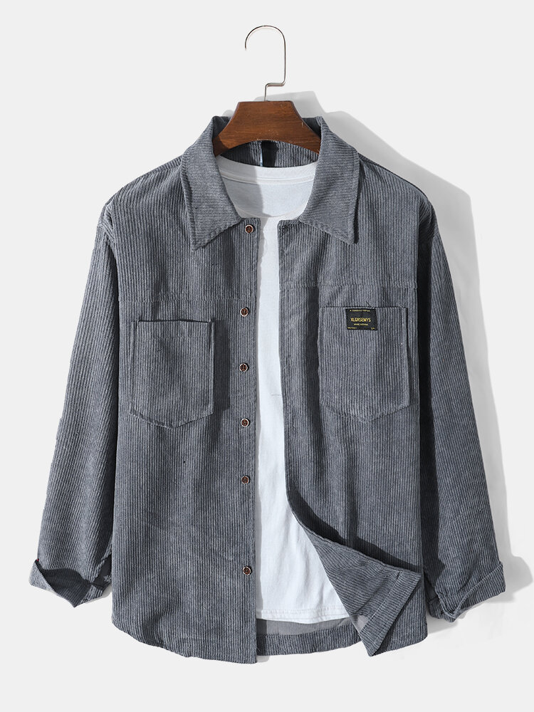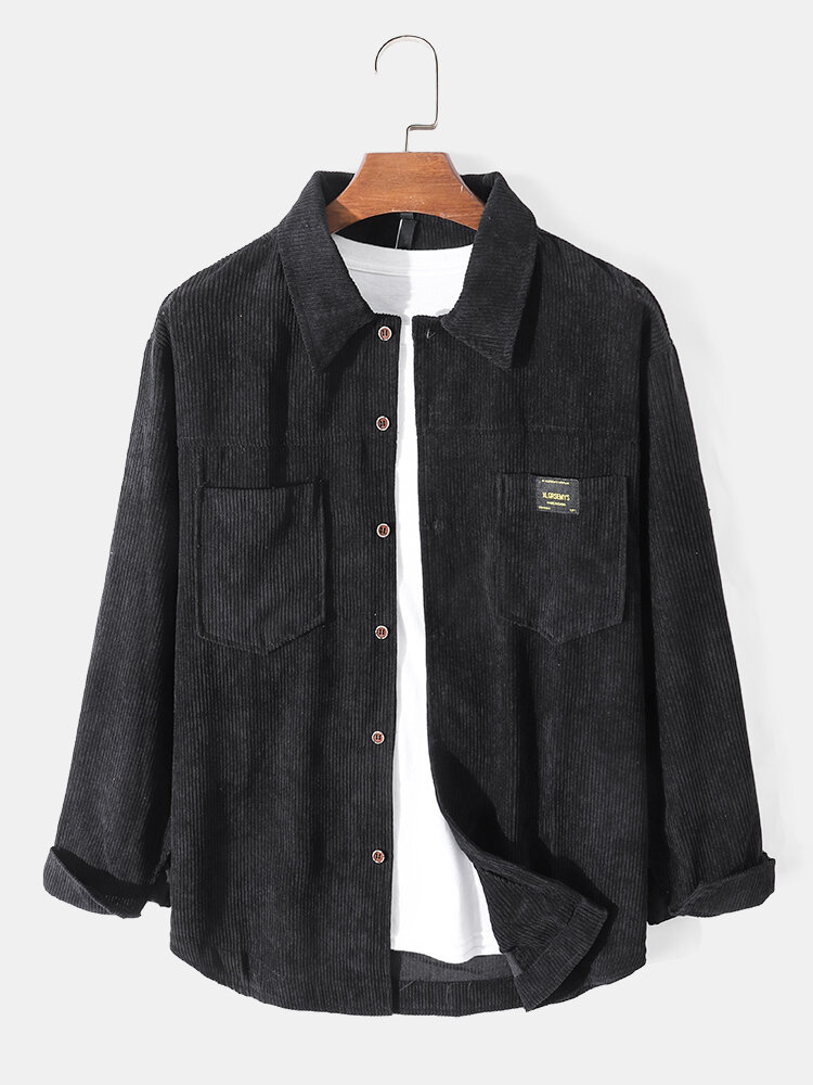 Mens Corduroy Simple New Two Pockets Retro Outer Shirt – Black XL