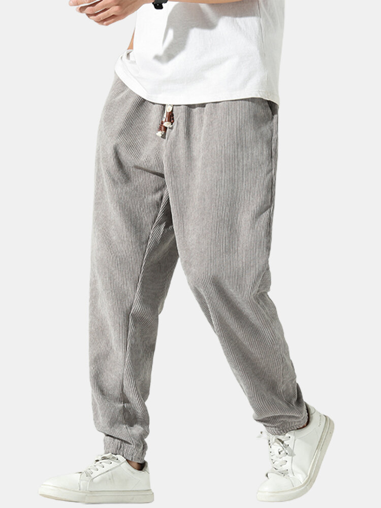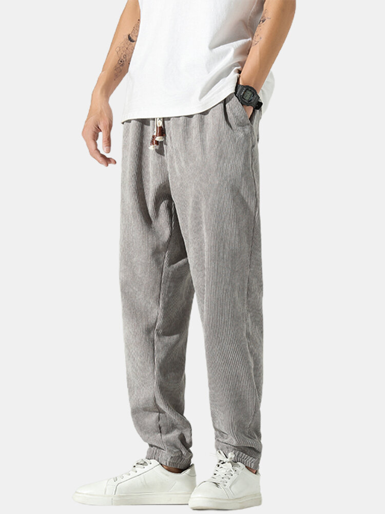 Mens Corduroy Solid Color Casual Pants With Pocket – Black XL