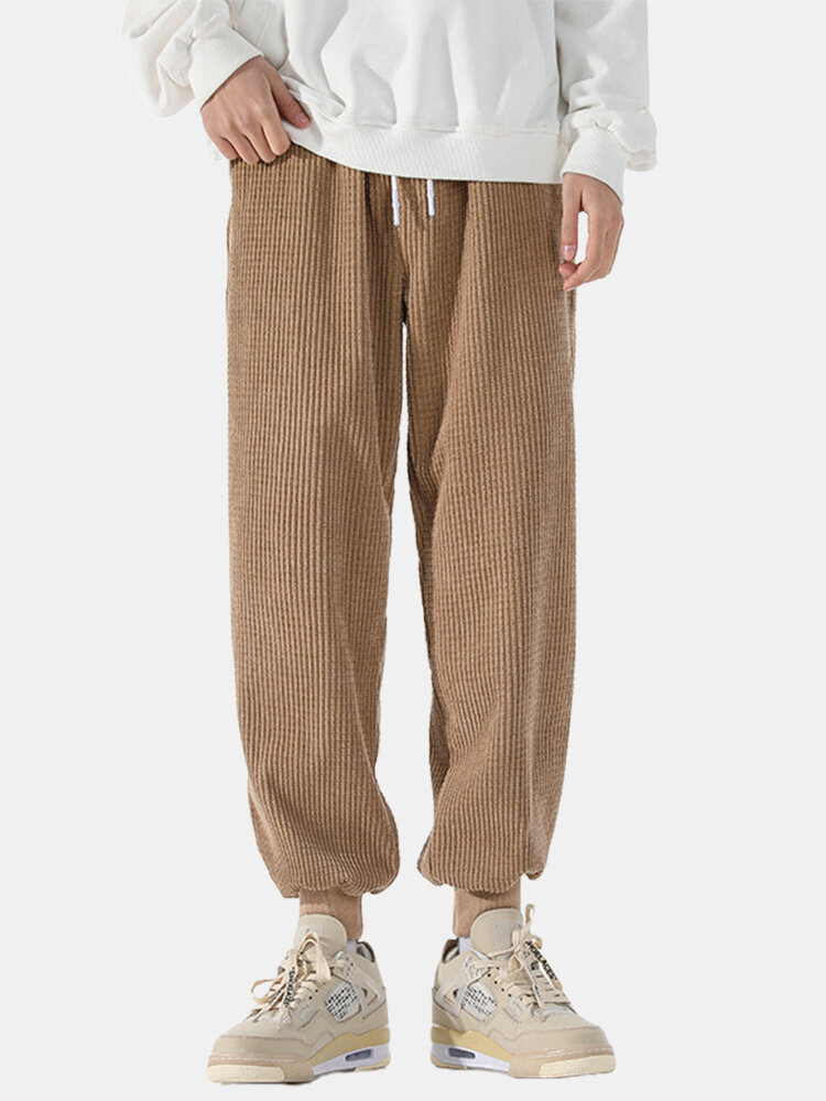 Mens Corduroy Solid Color Drawstring Casual Jogger Pants – Blue S