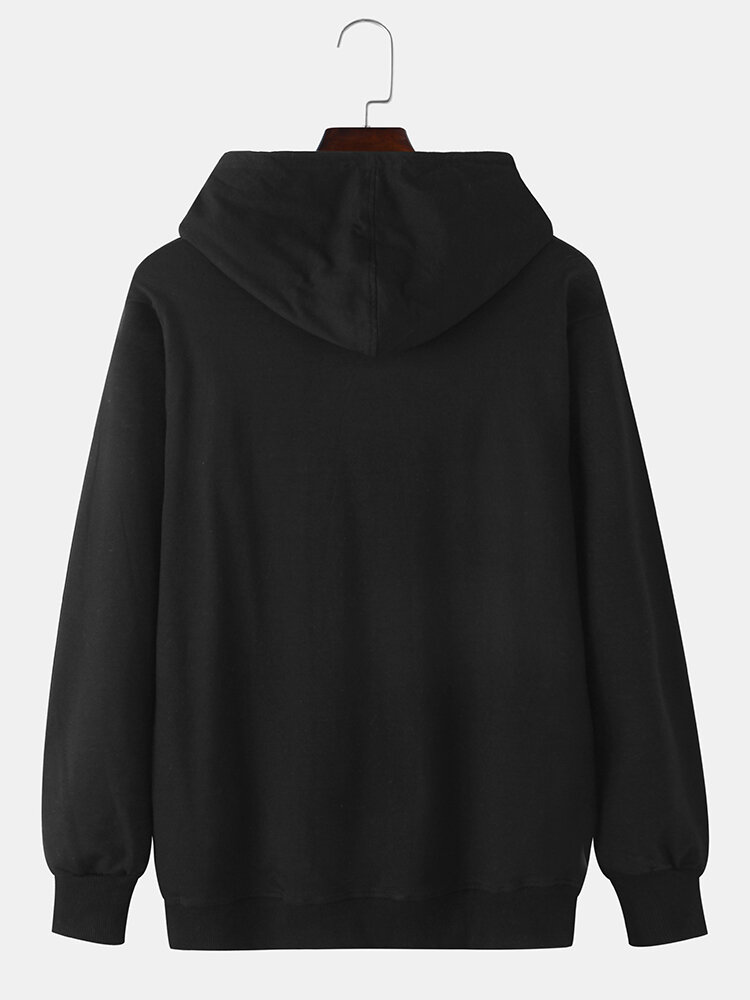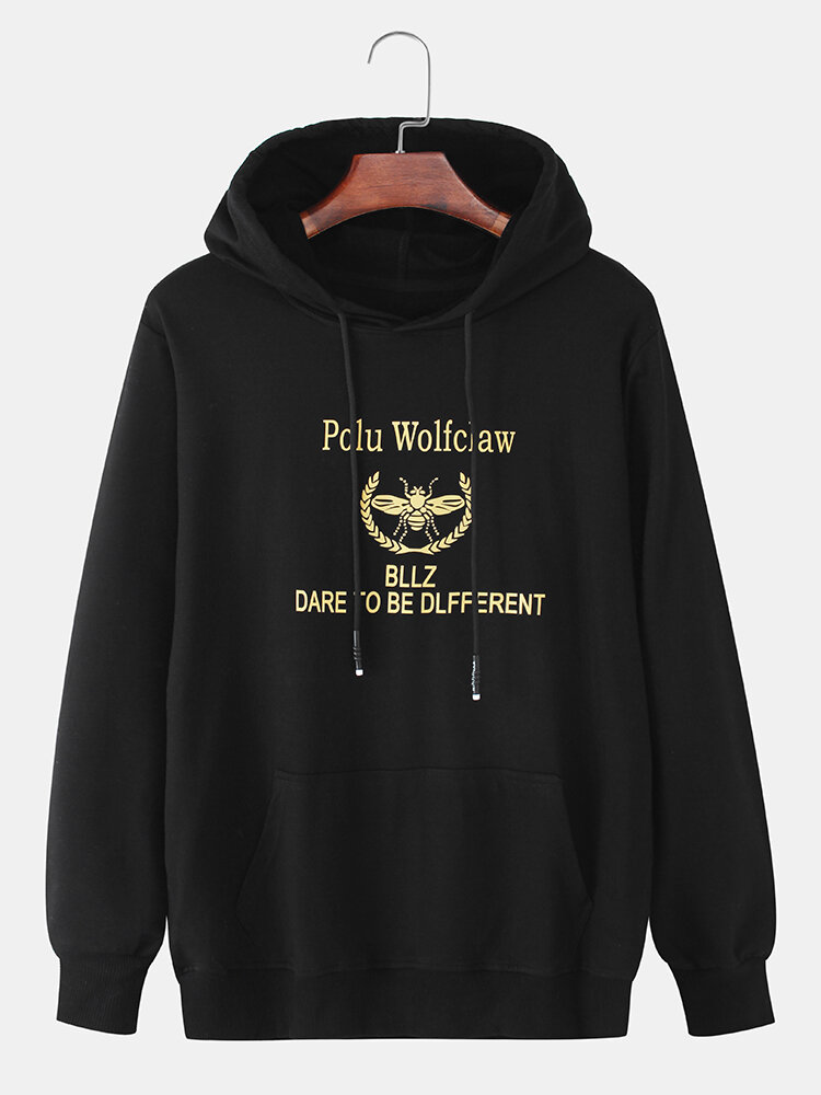Mens Cotton Bee & Letter Print Kangaroo Pocket Long Sleeve Drawstring Hoodies – Black XL