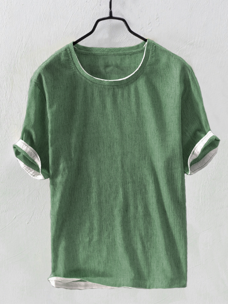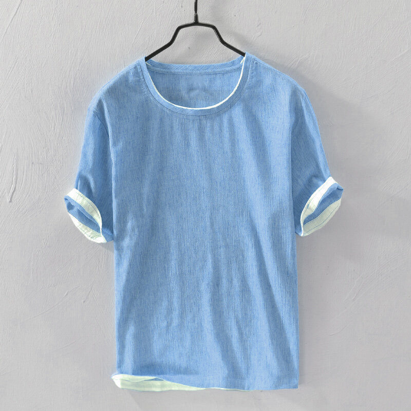 Mens Cotton Brief Solid Color Short Sleeve Summer Casual T-shirts – 2XL Blue