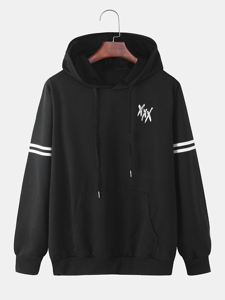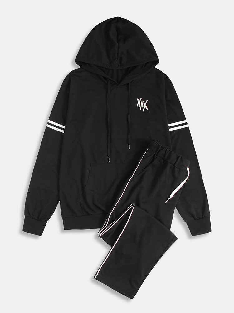 Mens Cotton Casual Loose Two Pieces Long Sleeve Drawstring Hooded Suits – Black L