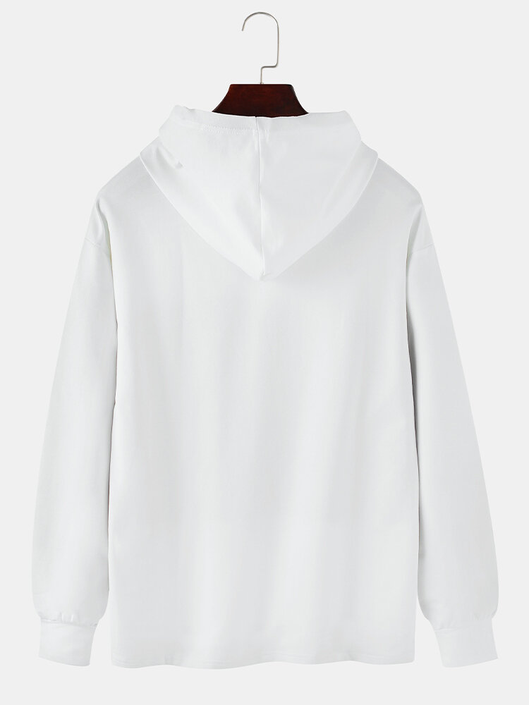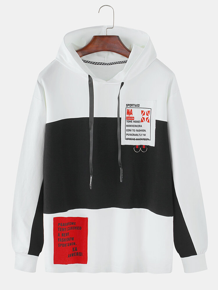 Mens Cotton Color Block Patchwork Texting Print Casual Drawstring Hoodies – White XL