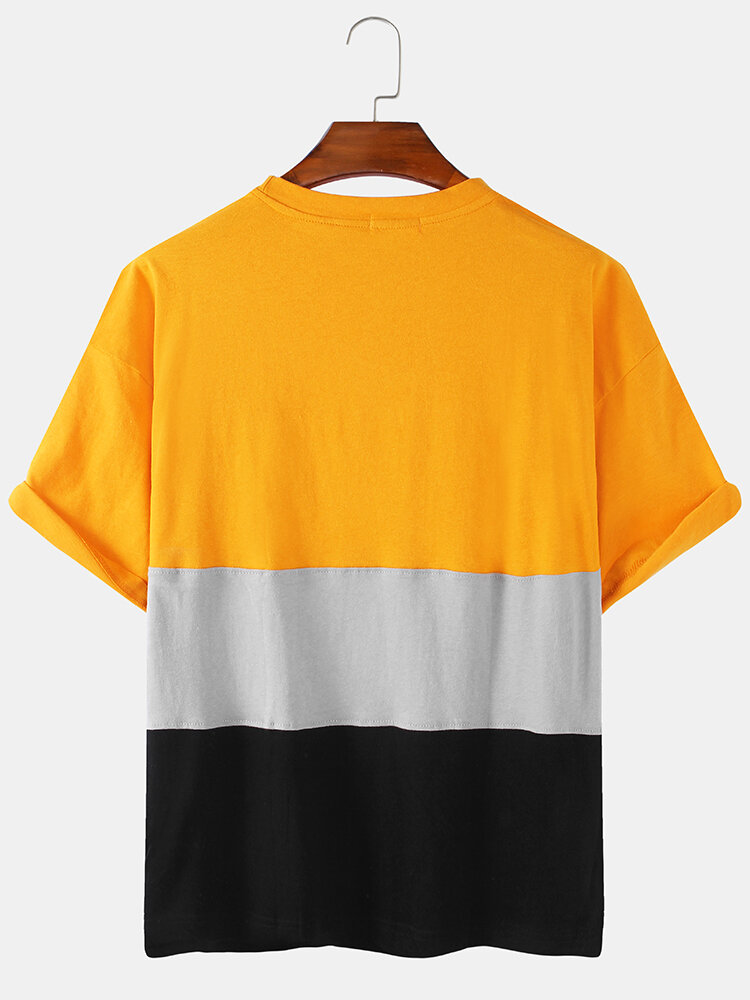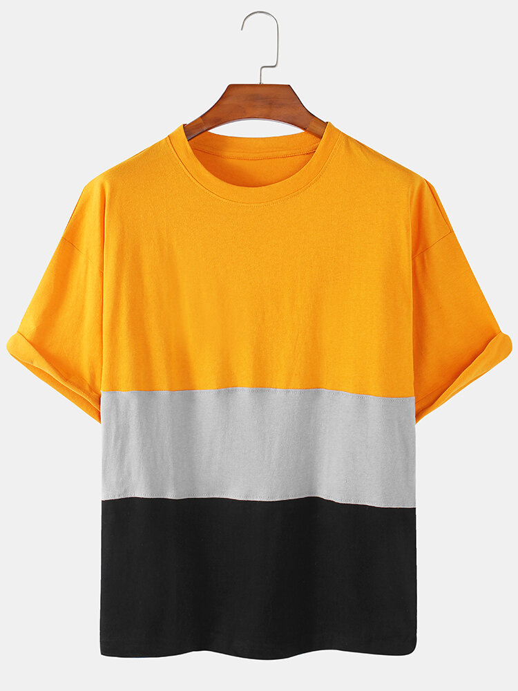 Fit Type:Loose FitMaterial:CottonNeckline:Round NeckPattern Type:Color BlockScene:Leisure,CasualSeason:Spring,SummerSize:M,XXL,L,XLSleeve:Short SleeveStyle:CasualThickness:Regular