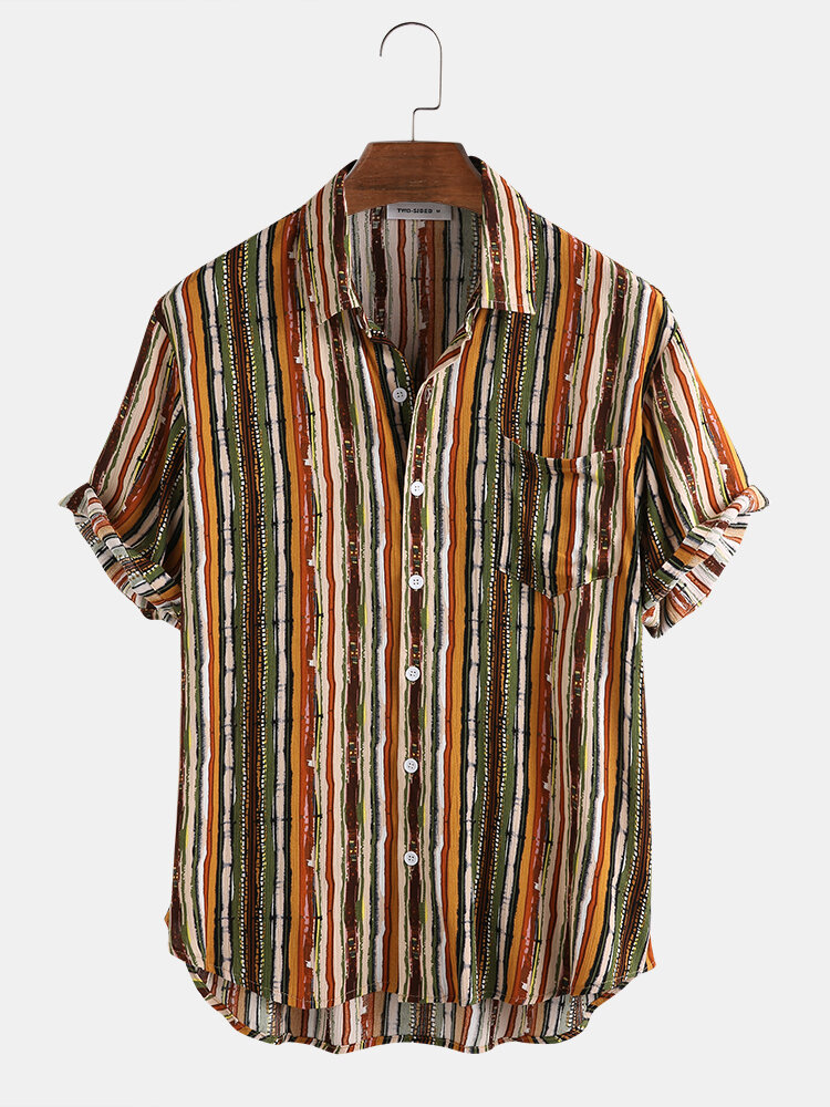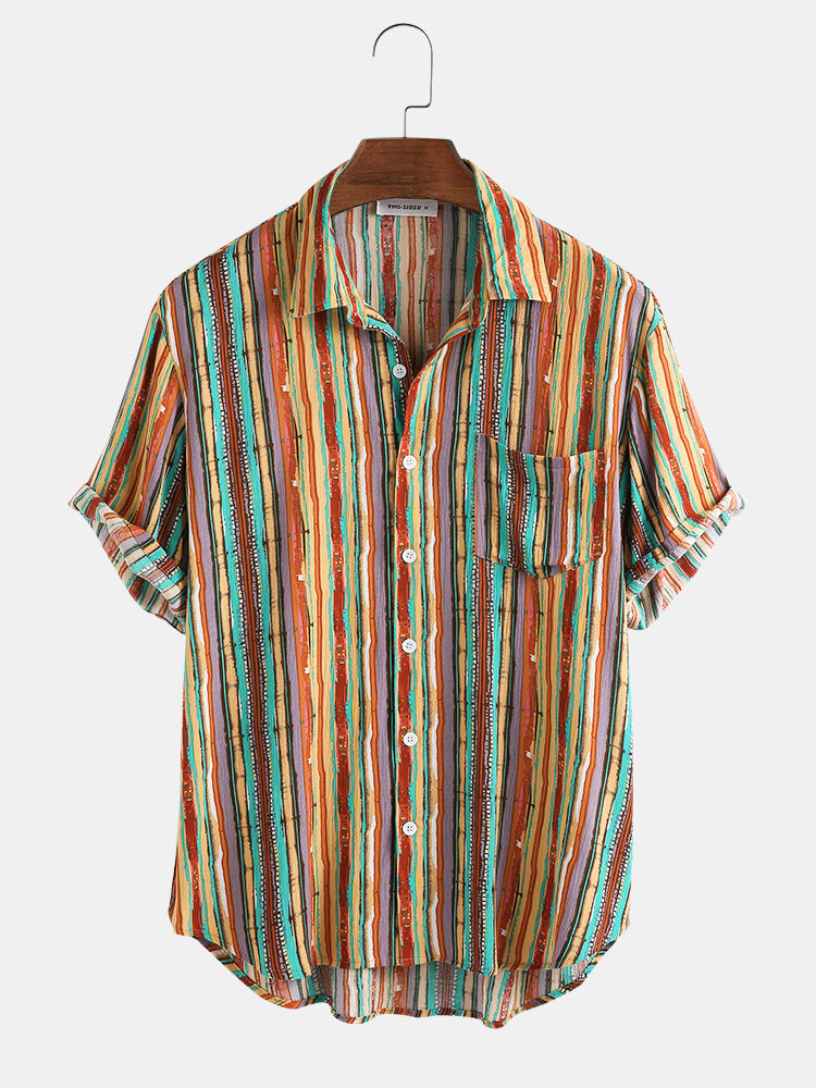 Brand:ChArmkpRDecoration:Pocket,ButtonFit Type:Loose FitMaterial:Rayon,CottonNeckline:LapelPattern Type:StripedScene:Leisure,CasualSeason:Spring,SummerSize:XXXL,XXL,L,XL,MSleeve:Short SleeveStyle:CasualThickness:Regular