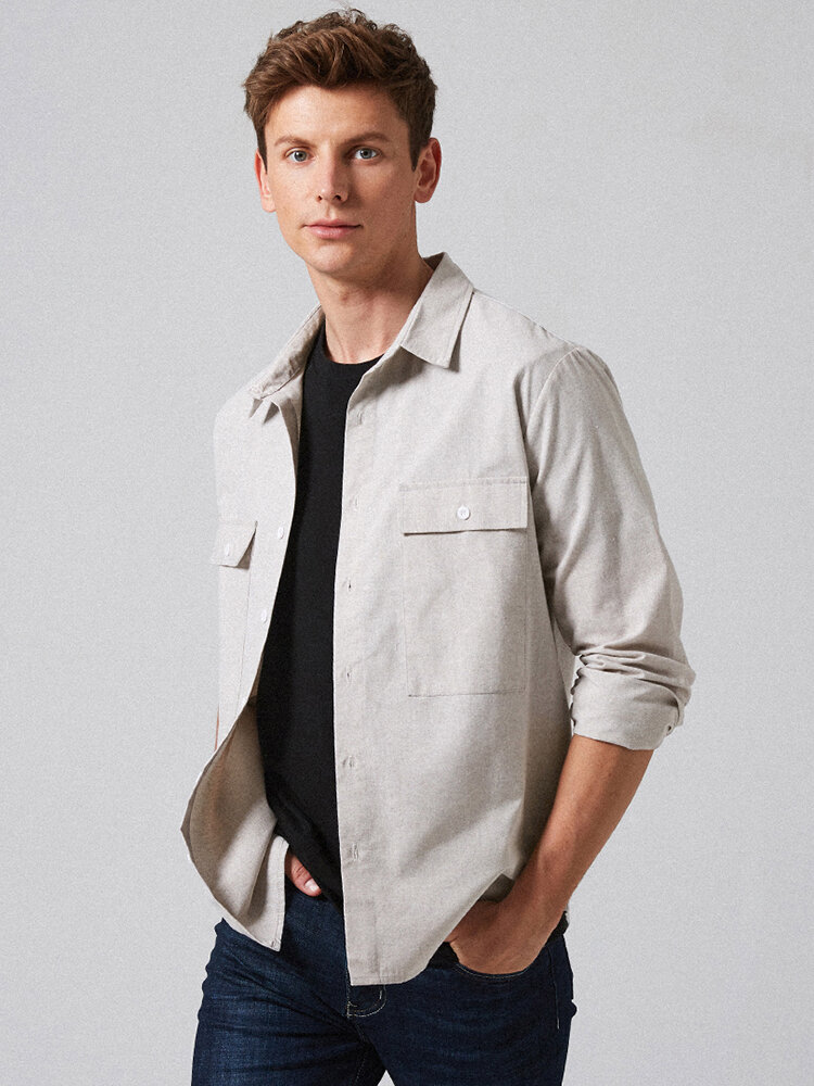 Item Type: ShirtPattern Type: Solid Color Gender: Men Fit Type: FitStyle: Casual,Fashion Thickness: RegularCollar: Turn Down CollarSeason: Spring,Autumn,WinterDecorations: PocketsMaterial: Polyester,CottonSleeve Length: Long SleeveColor: Grey Green,Blue,Light KhakiCuff Type: Shirt Sleeve Occasion: Leisure,Home,Daylife Package includes