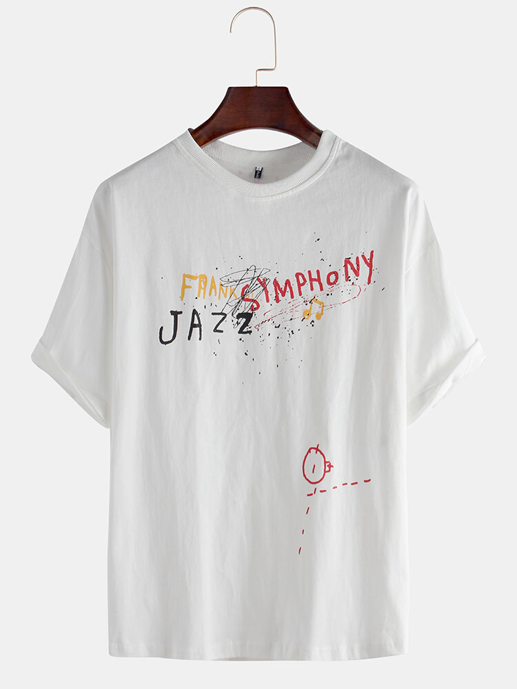 Mens Cotton Fashion Letters Printing Short Sleeve Crew Neck T-Shirts – XL White