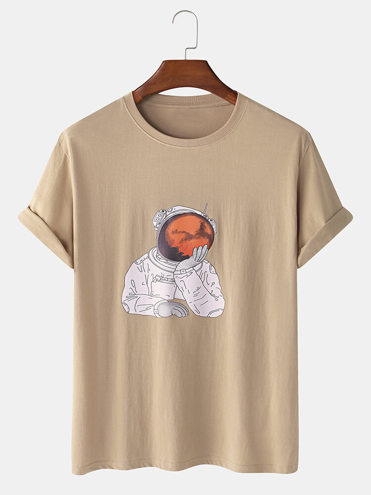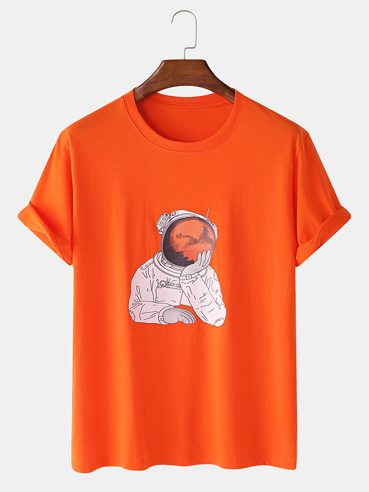 Mens Cotton Funny Astronaut Print Designer Short Sleeve T-Shirts – Black L