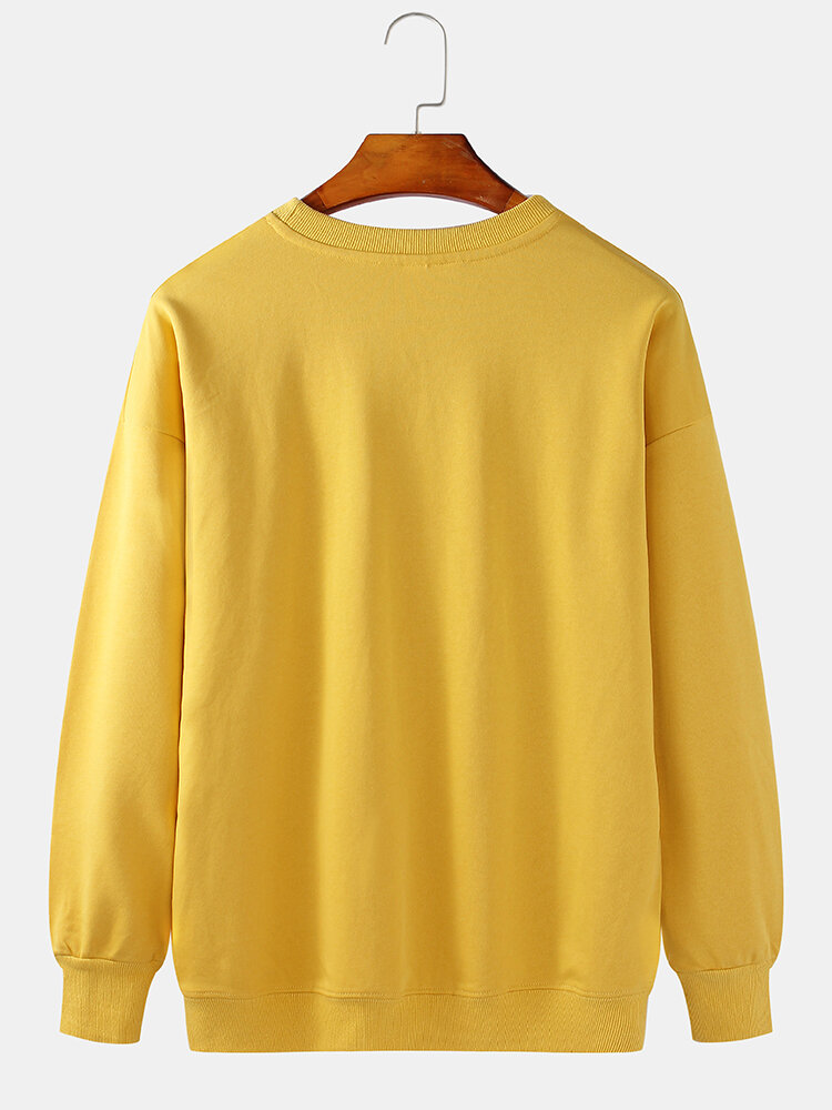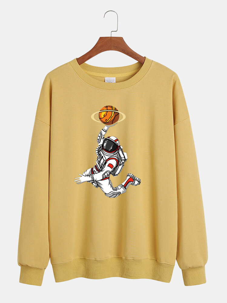 Mens Cotton Funny Astronaut Print Long Sleeve Pullover Drop Shoulder Casual Sweatshirts – Purple S
