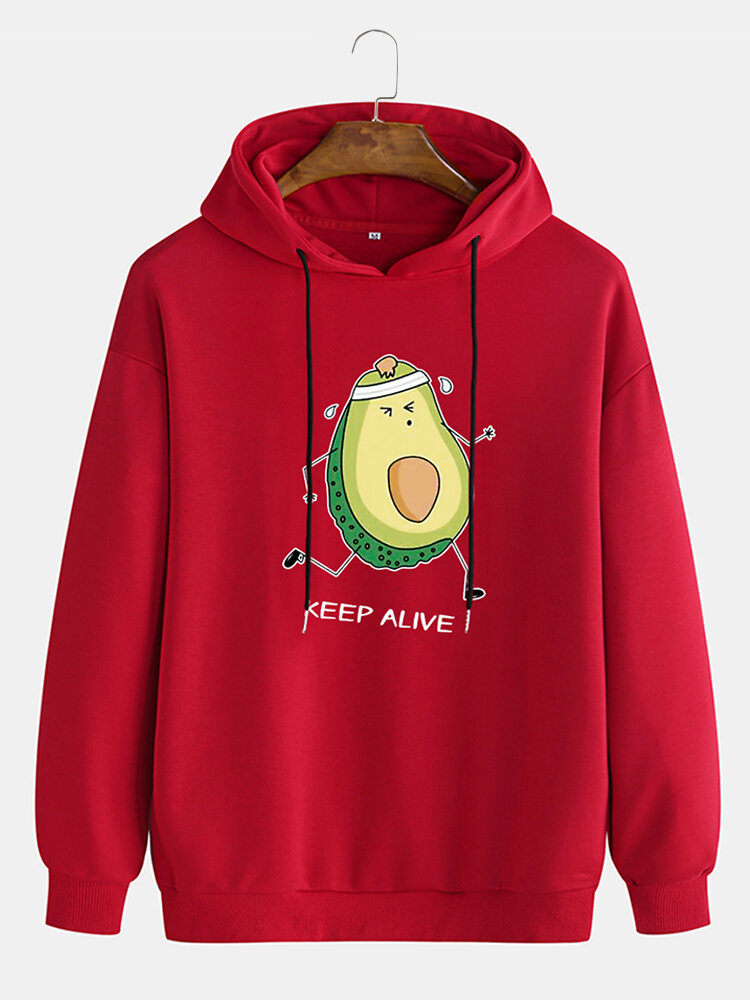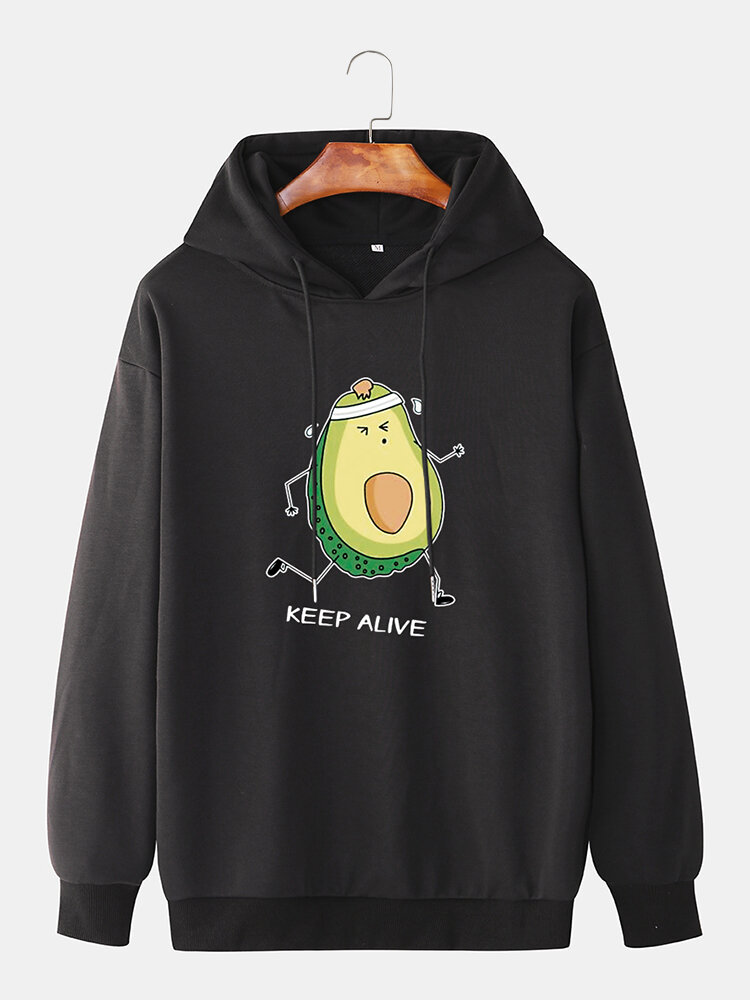 Mens Cotton Funny Cartoon Avocado Print Long Sleeve Casual Drawstring Hoodies – Black S