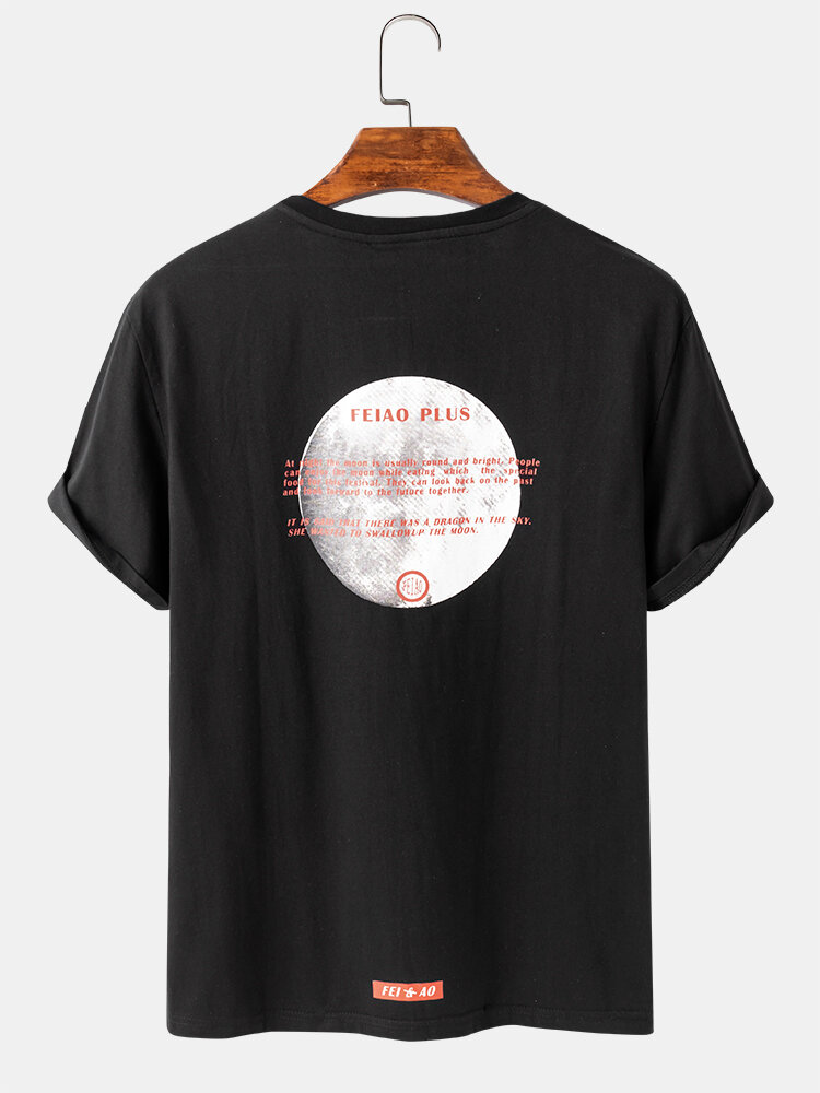 Mens Cotton Graphic Print Solid Color Loose Casual O-Neck T-Shirts – Black S