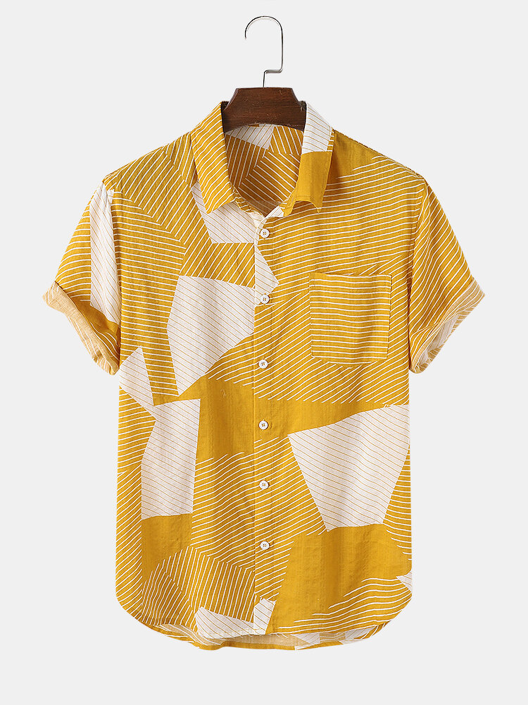Description:Decoration:PocketFit Type:Regular FitMaterial:Cotton,RayonNeckline:LapelPattern Type:PatchworkScene:Leisure,Home,CasualSeason:SummerSize:XXL,L,S,XL,MSleeve:Short SleeveStyle:CasualThickness:Regular