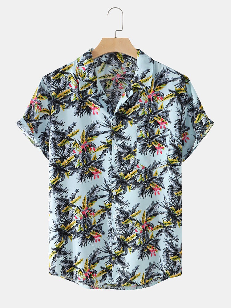 Decoration:PatternFit Type:Regular FitMaterial:CottonNeckline:Revere CollarPattern Type:Ditsy Floral,PlantsScene:Leisure,CasualSeason:Spring,Summer,AutumnSize:XXL,L,S,XL,MSleeve:Short SleeveStyle:CasualThickness:Thin