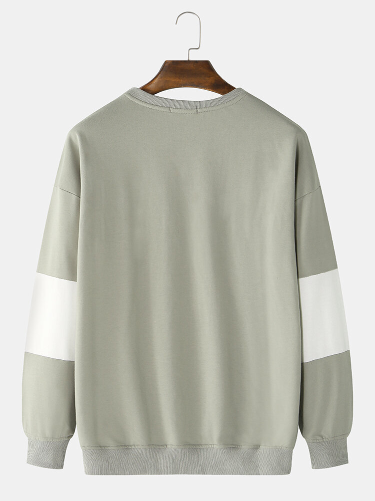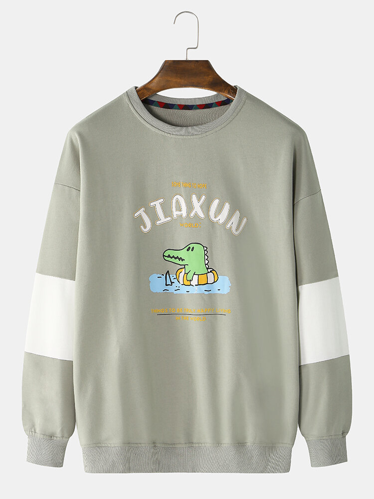 Mens Cotton Letter Cartoon Animal Print Crew Neck Relaxed Fit Drop Sleeves Sweatshirts – White L