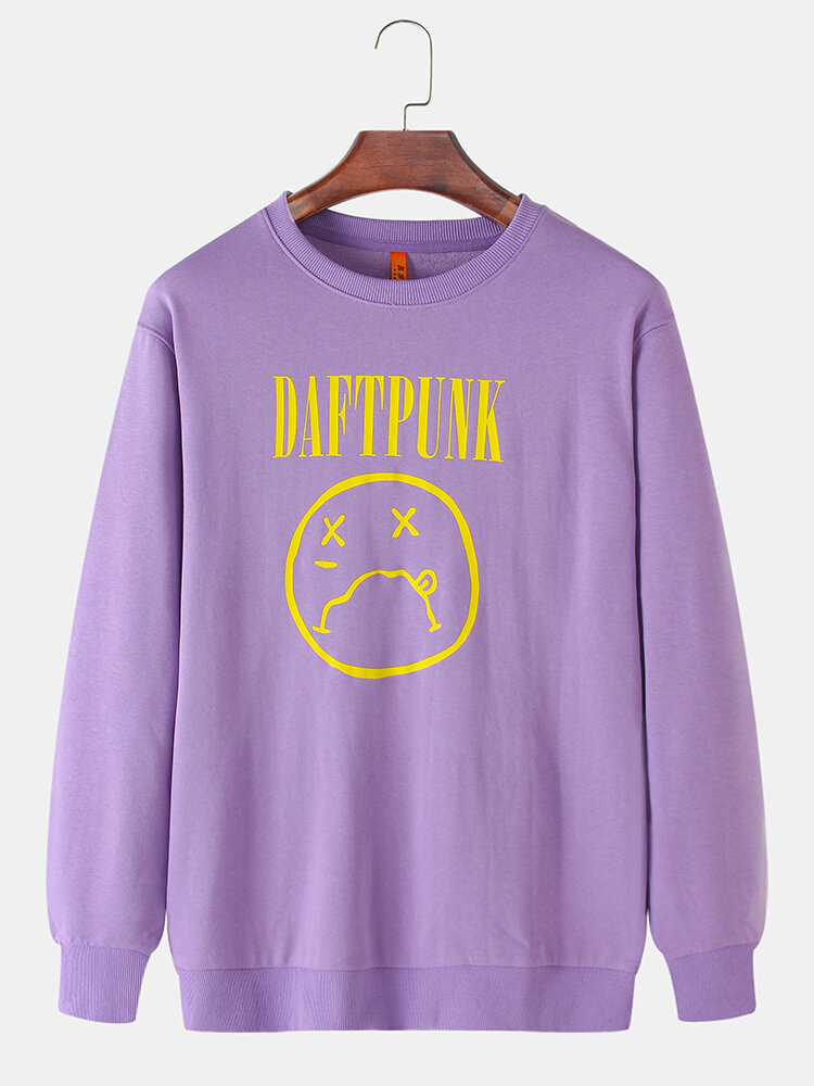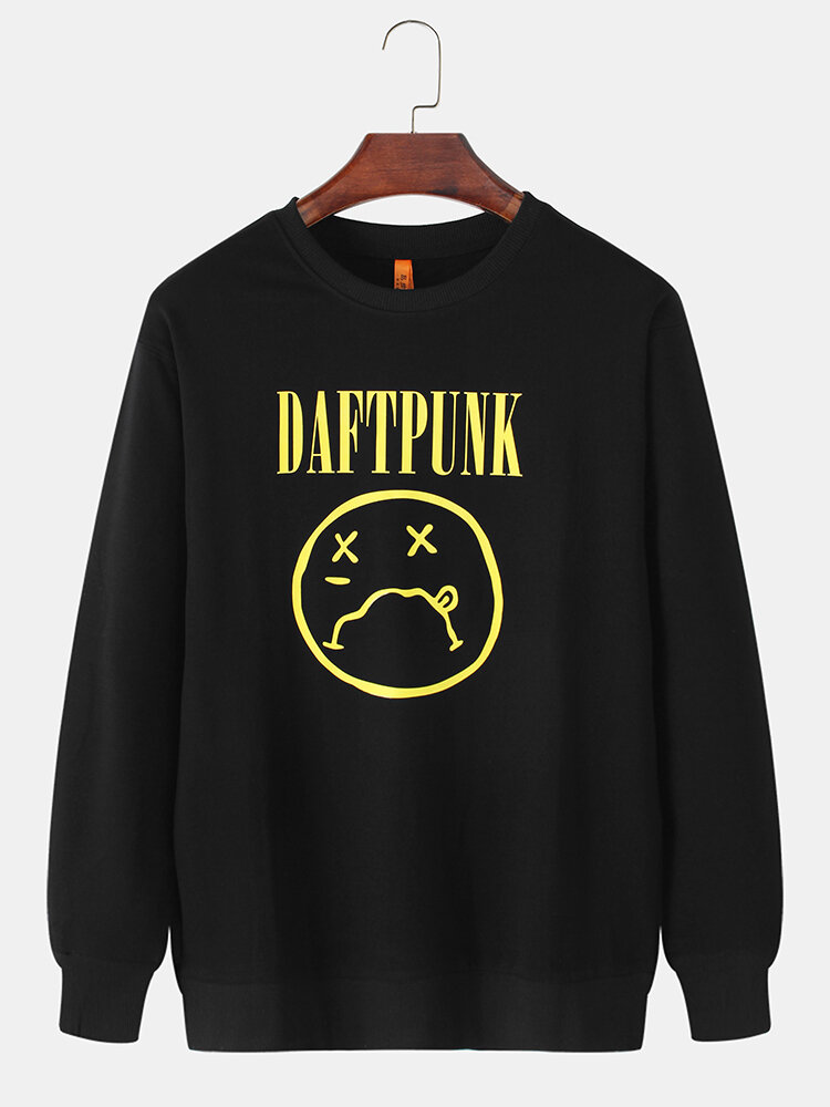 Mens Cotton Letter Print Emojis Pattern Long Sleeve Pullover Sweatshirts – Yellow S
