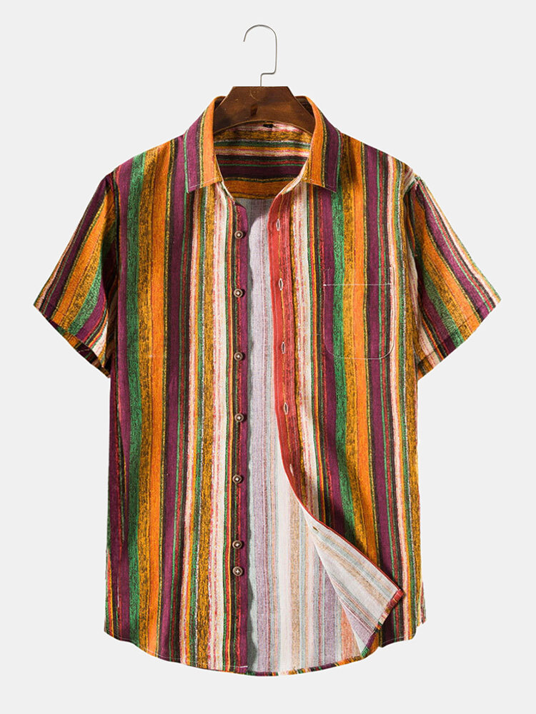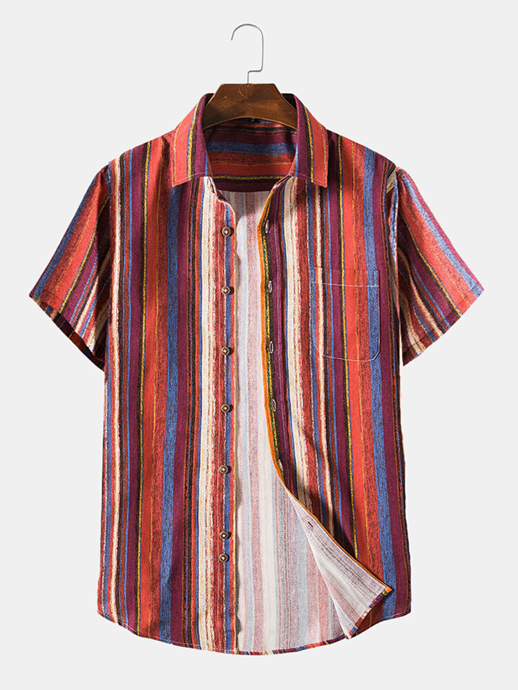 Decoration:PocketFit Type:Regular FitMaterial:Polyester,CottonNeckline:LapelPattern Type:StripedScene:Leisure,Home,CasualSeason:SummerSize:L,S,XL,MSleeve:Short SleeveStyle:CasualThickness:RegularPackage Included: 1*Shirts