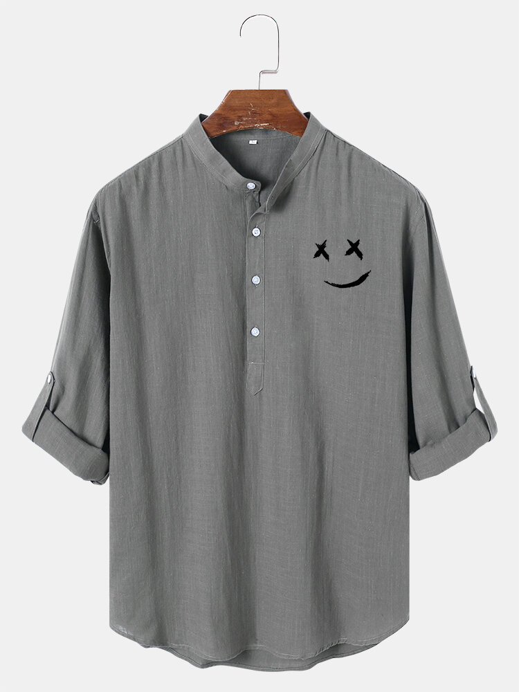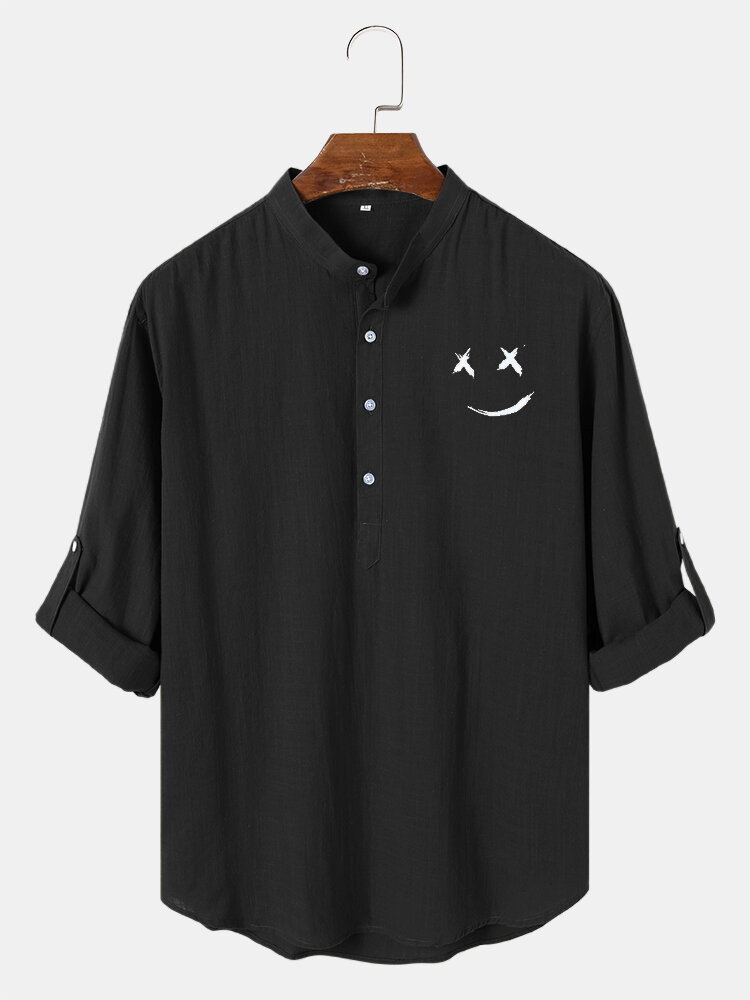 Mens Cotton Linen Long Sleeve Casual Henley Shirt – Black M