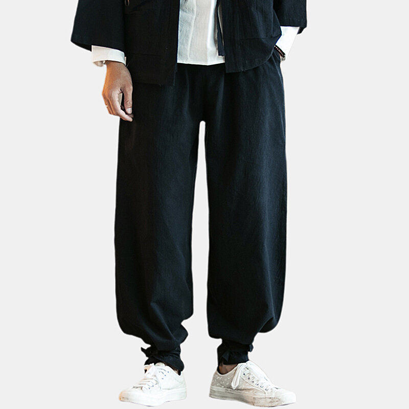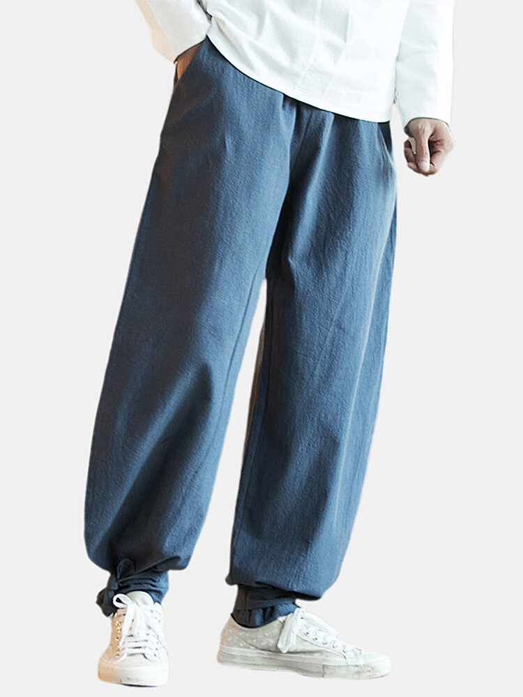 Mens Cotton Pure Color Elastic Waist Loose Comfy Casual Pants – S Grey