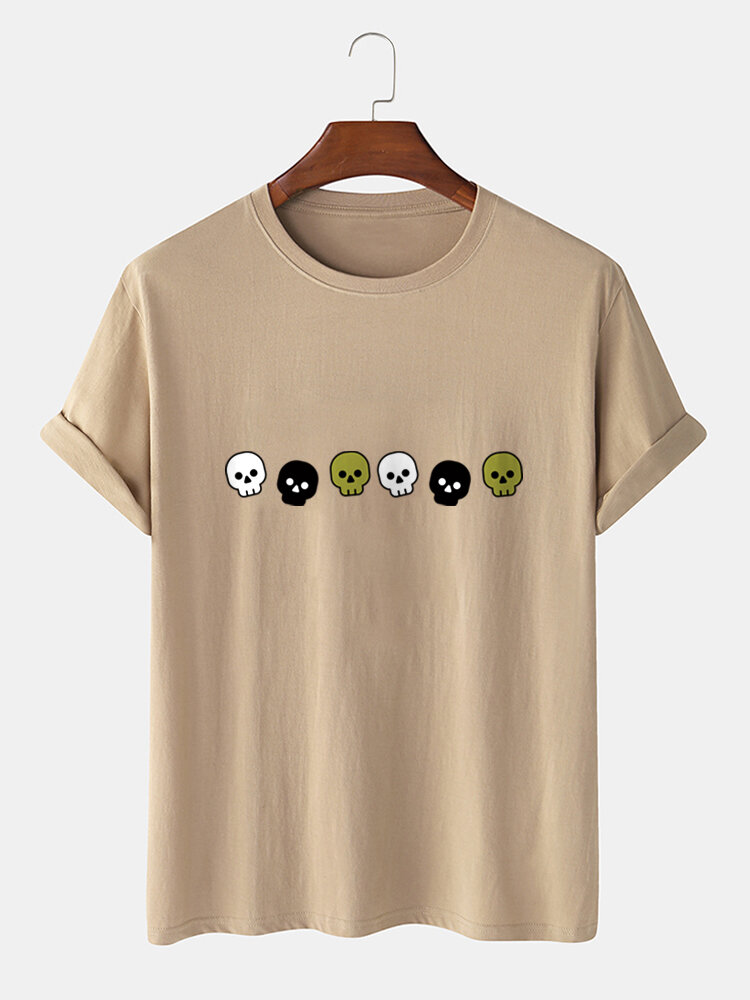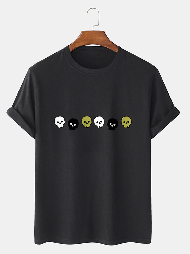 Mens Cotton Skeleton Cartoon Short Sleeve Casual T-Shirts – White S
